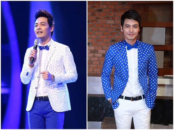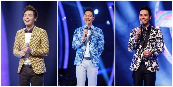 | Thời trang sân khấu của Phan Anh khá sang trọng và chỉn chu. Ông bố ba con dường như rất yêu thích các kiểu comple lịch lãm. |