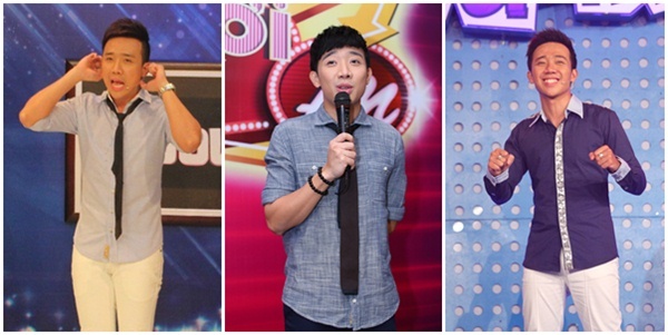 | Vest đen luôn là sự lựa chọn hàng đầu của phái mạnh. Tuy nhiên không đóng bộ già dặn, Trấn Thành luôn phối hợp với sơ mi màu, sọc, họa tiết họa văn cùng phụ kiện đi kèm như nơ, cà vạt… để mang lại sự trẻ trung và không xa cách với khán giả. |