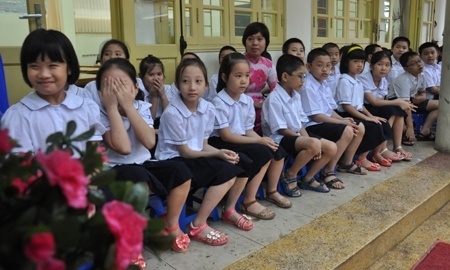 | Học sinh trường Tiểu học Nghĩa Tân (Hà Nội) trong ngày khai giảng. (Ảnh: Văn Chung) |