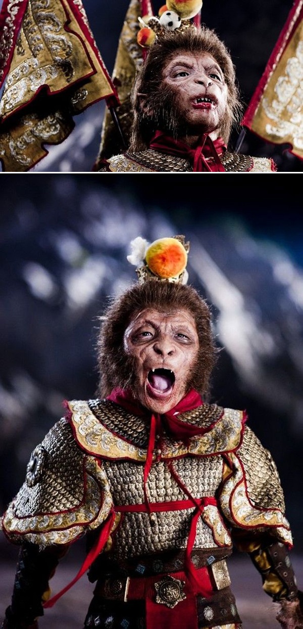| Tuy chỉ hiện nguyên hình ở cuối phim Tây du ký - Mối tình ngoại truyện (2012) nhưng Tôn Ngộ Không cũng gây được ấn tượng vì mang gương mặt rất đáng sợ. Diễn viên đóng vai này là Cát Hành Vũ. |