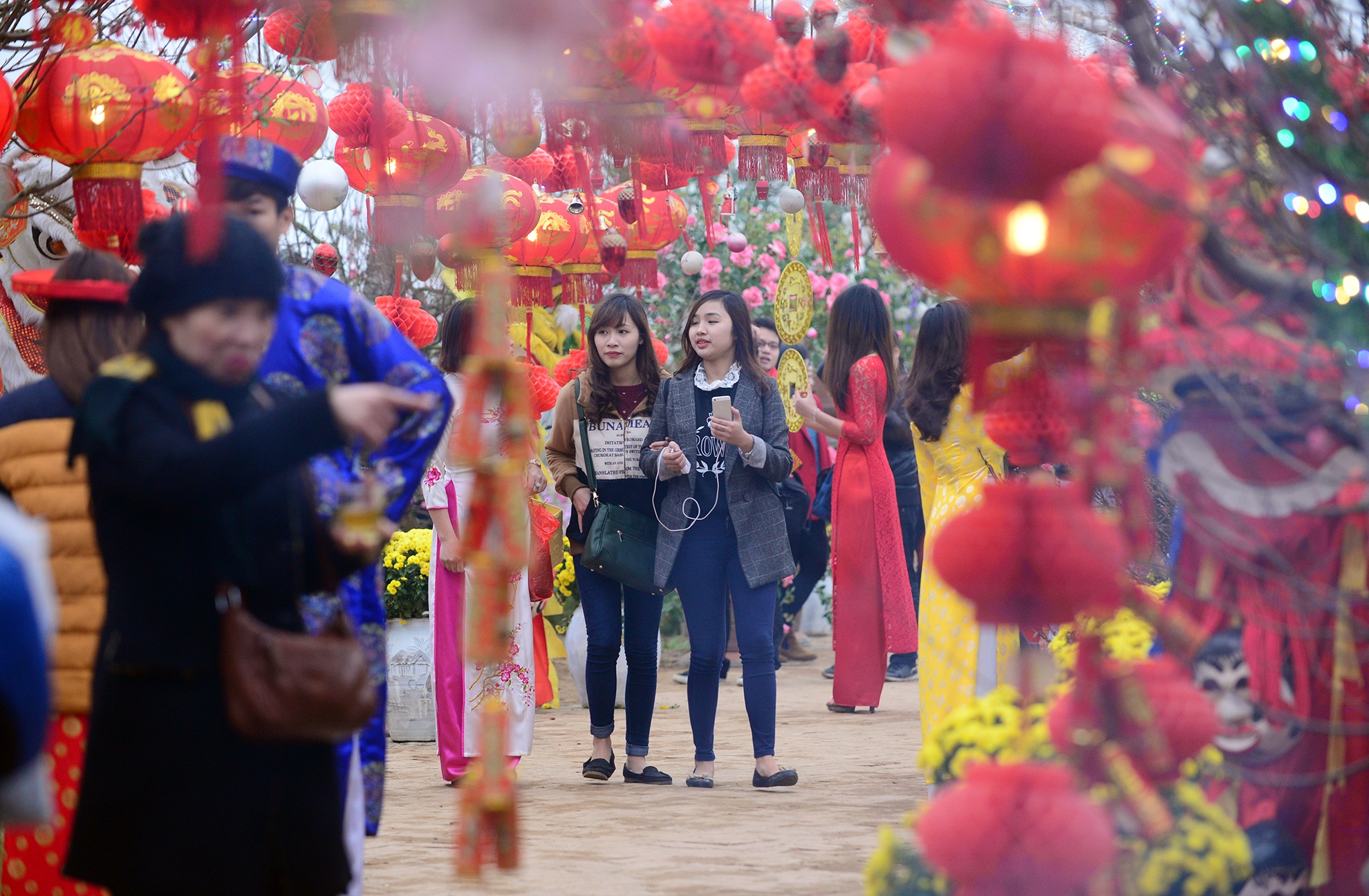 | Nhiều bạn trẻ từ tỉnh xa và ngoại thành thủ đô cũng về dạo chơi. |