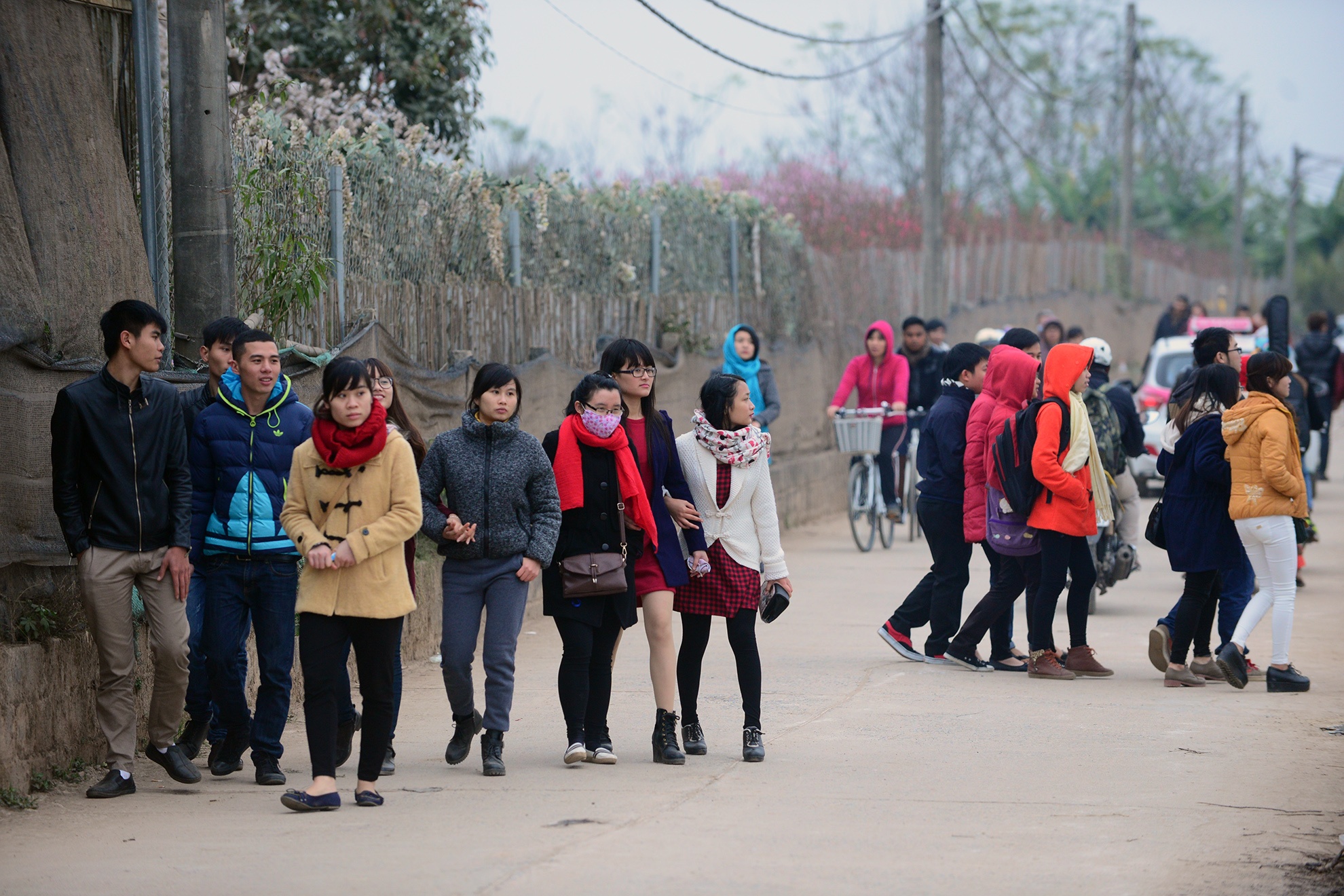 | Trong số này có cả người đi tìm mua đào và giới trẻ lên chụp ảnh nhân dịp cuối tuần. |
