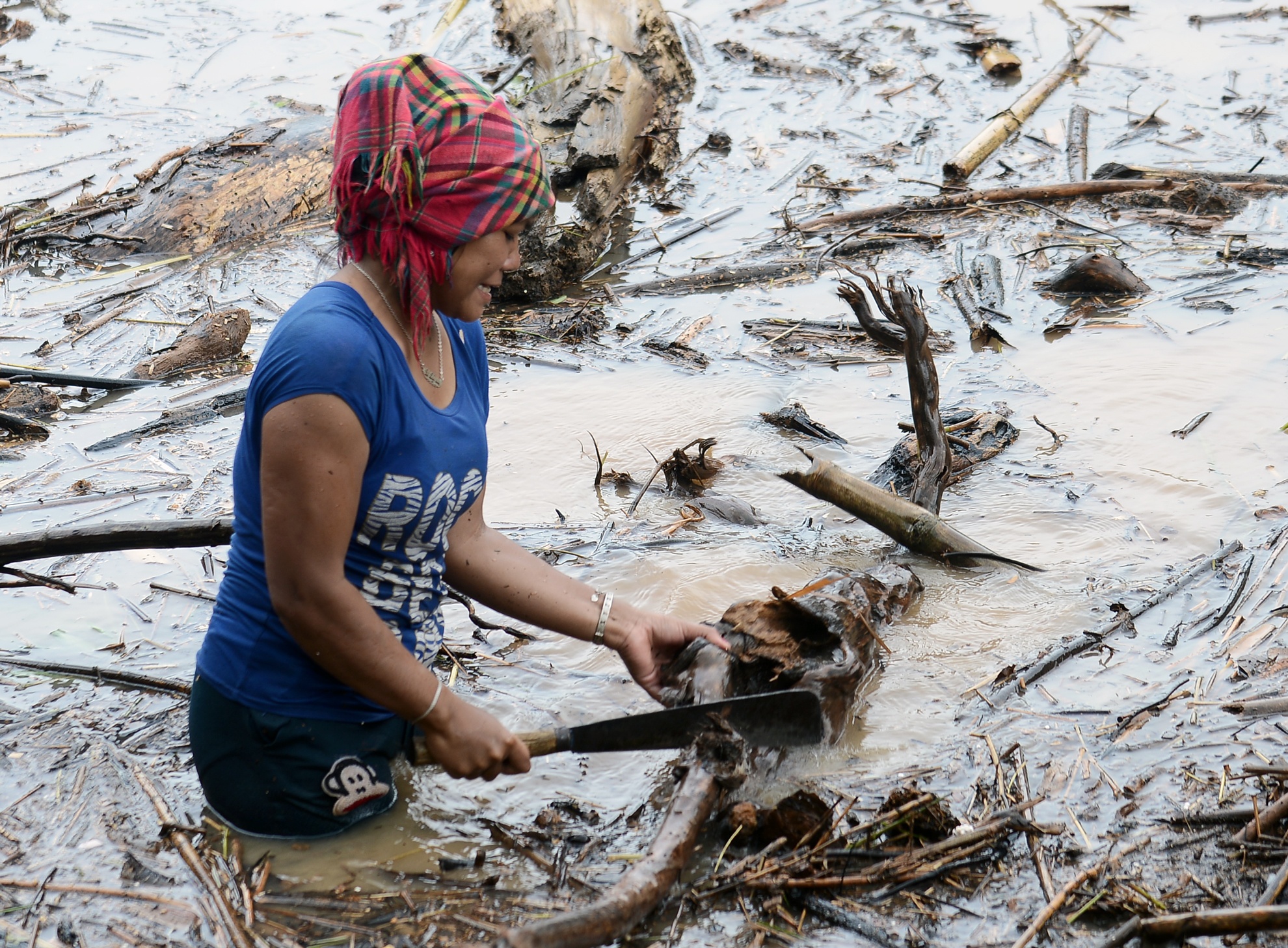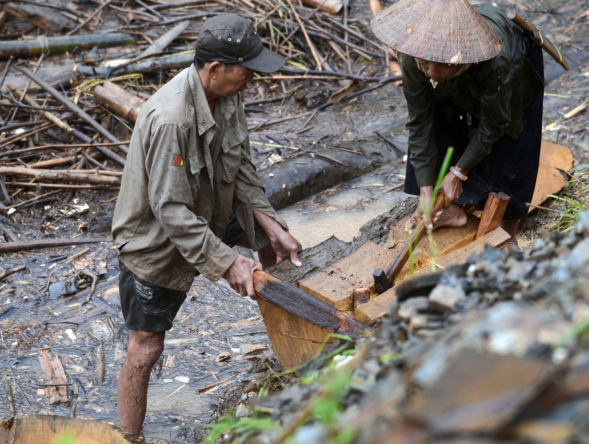 Tuy vậy, vẫn có một vài khúc gỗ lớn, có giá trị cao được cánh đàn ông lặn lội vớt về. Họ sẽ dựng làm nhà hoặc đem bán cho dân buôn.
