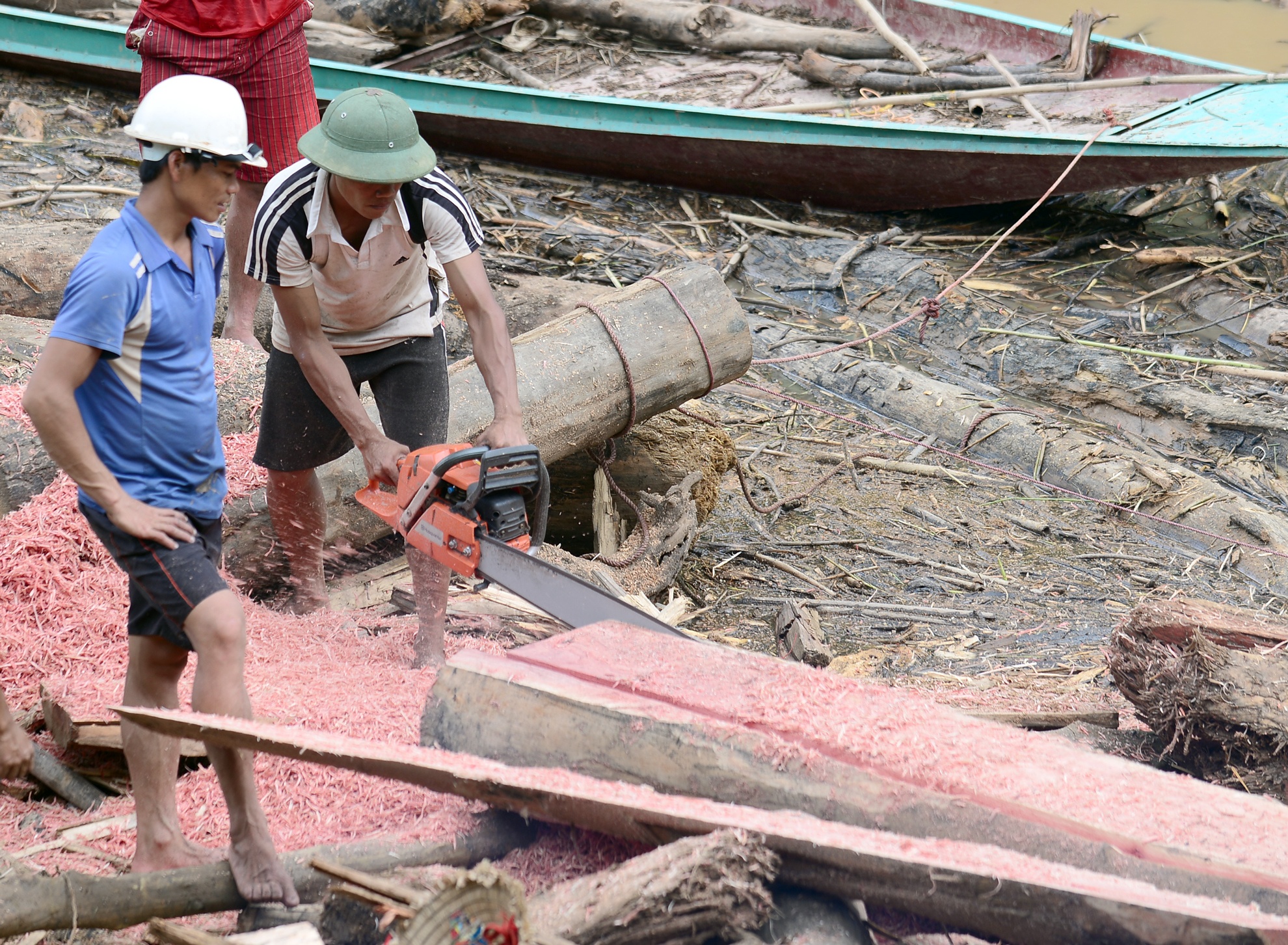 Chị Phen cho biết, những miếng gỗ lớn được xẻ có giá trị cao thì phải dùng thuyền máy ra giữa dòng vớt, còn lại chỉ là những cành cây bị mục rỗng trôi về dùng làm củi là chính.
