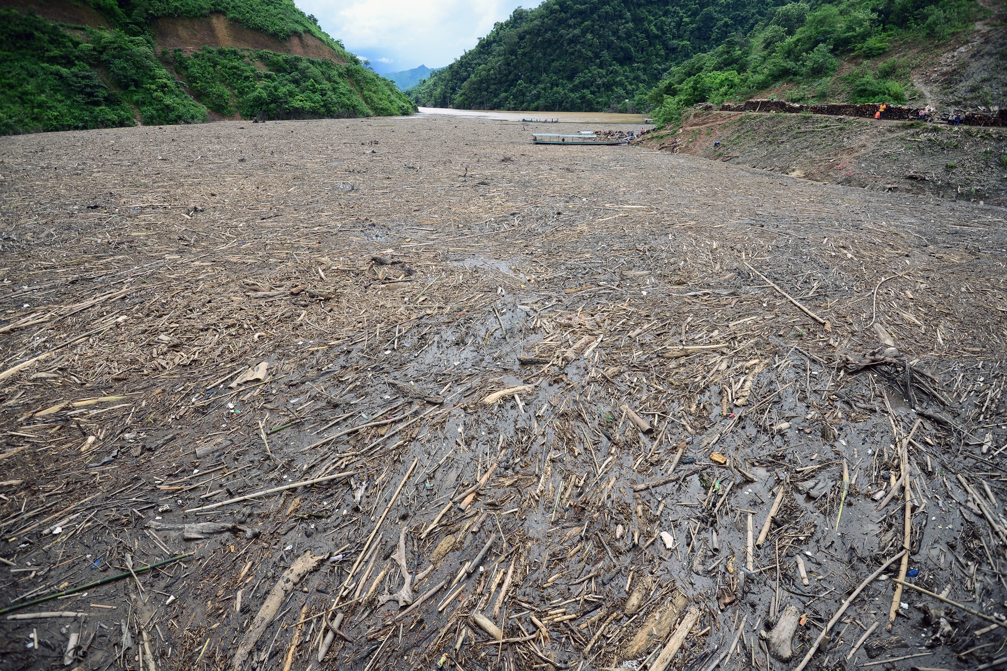 Ước tính có hàng nghìn m3 gỗ trôi dạt về. Khu vực này mực nước sâu hơn 20 m. Công việc xả đáy tránh lũ của nhà máy thủy điện vô cùng khó khăn do rác thải.
