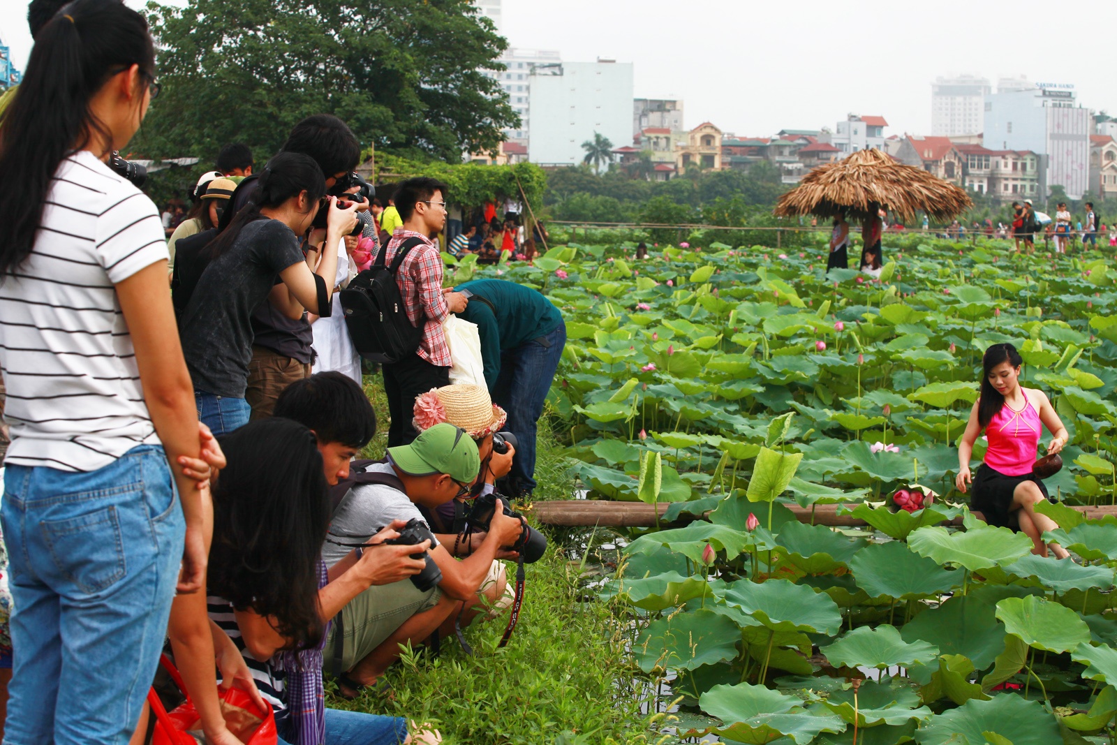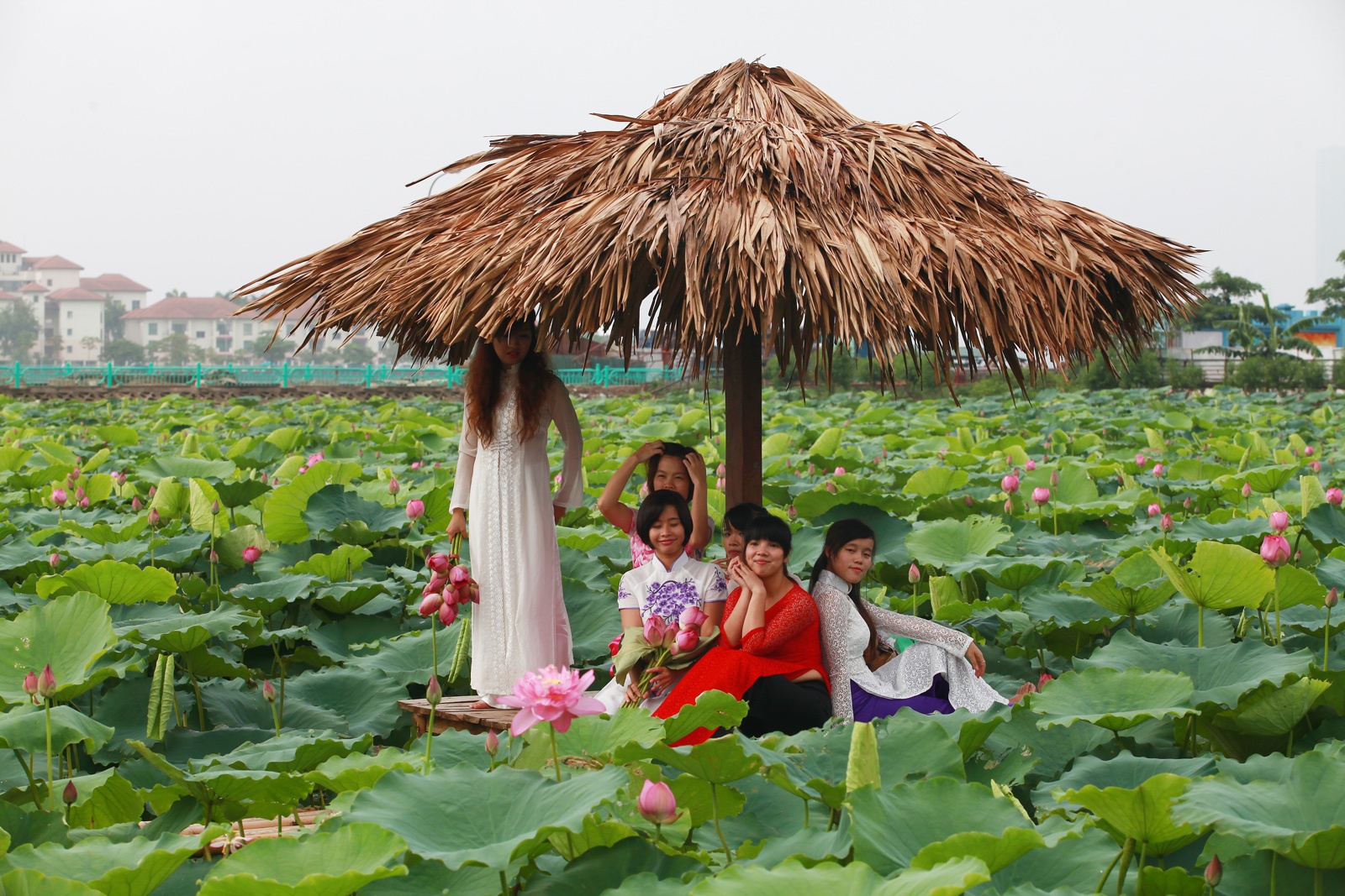 Trong những ngày mùa sen bắt đầu nở, hàng nghìn bạn trẻ và giới yêu thích nhiếp ảnh lần lượt đổ về khu vực công viên nước hồ Tây (Hà Nội) để chụp ảnh và sáng tác.
