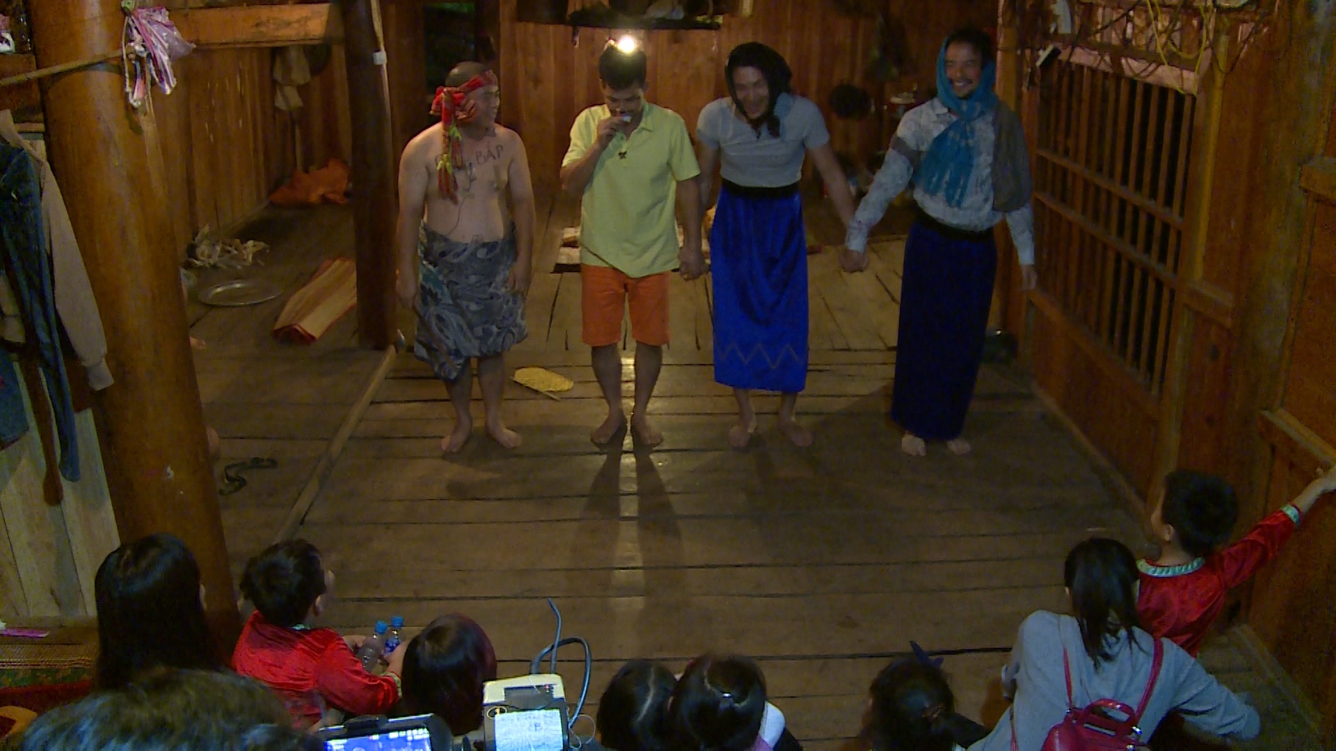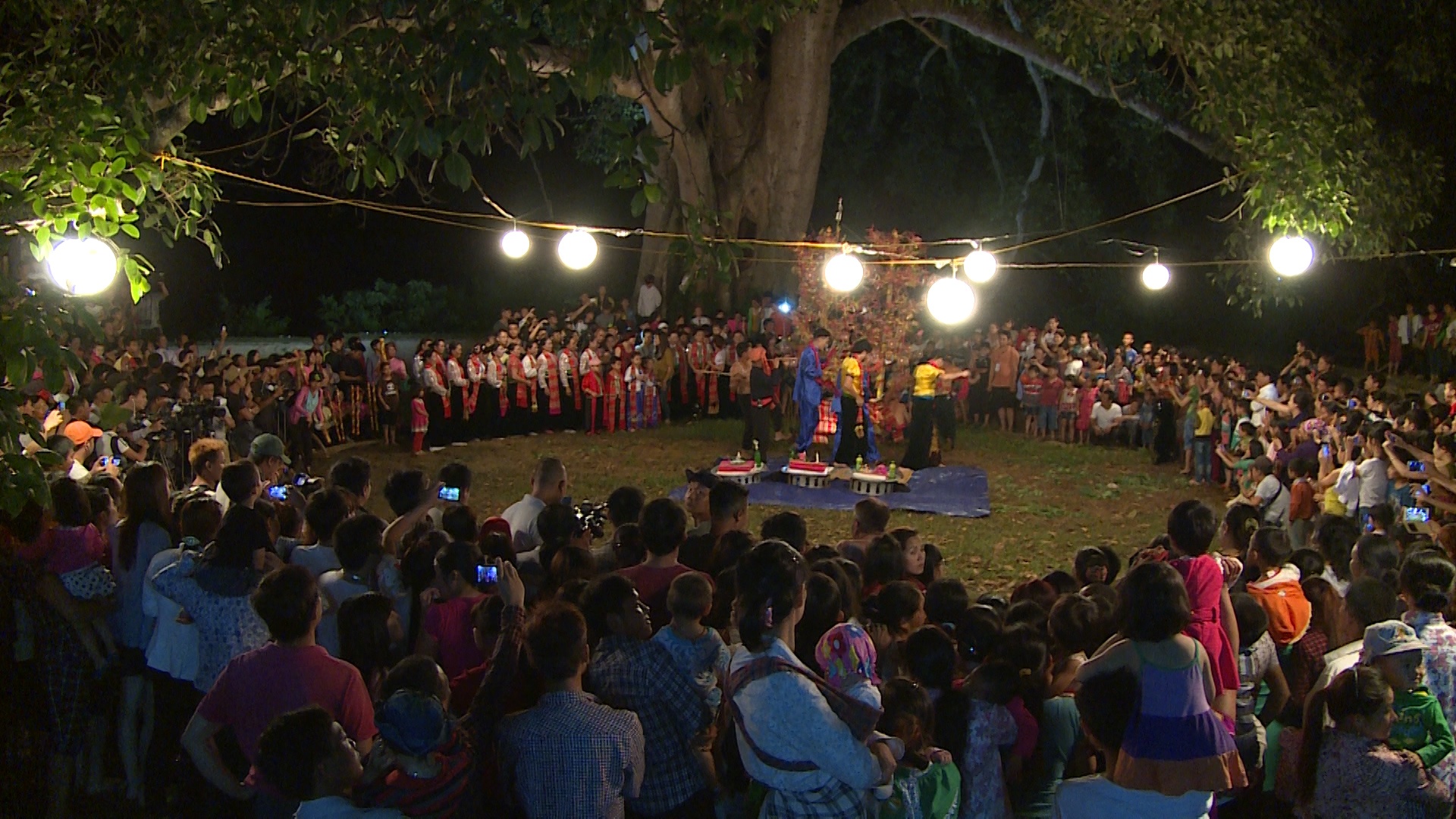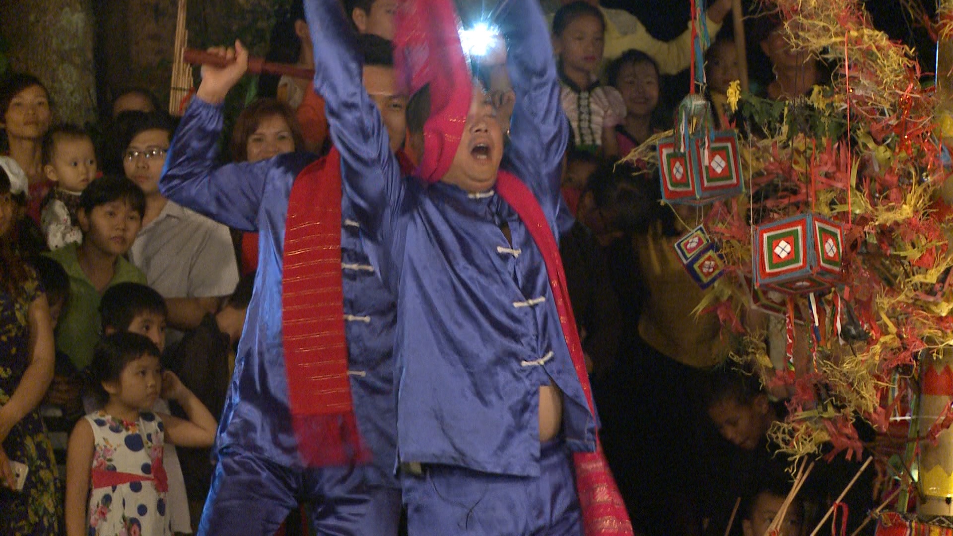 Sau bữa cơm tối, các cặp bố con cùng nhau tham gia lễ hội Hát Tra sôi động và rực rỡ sắc màu. Buổi biểu diễn với sự góp mặt của những vị khách lạ thu hút rất đông khán giả là dân làng và khách du lịch.
