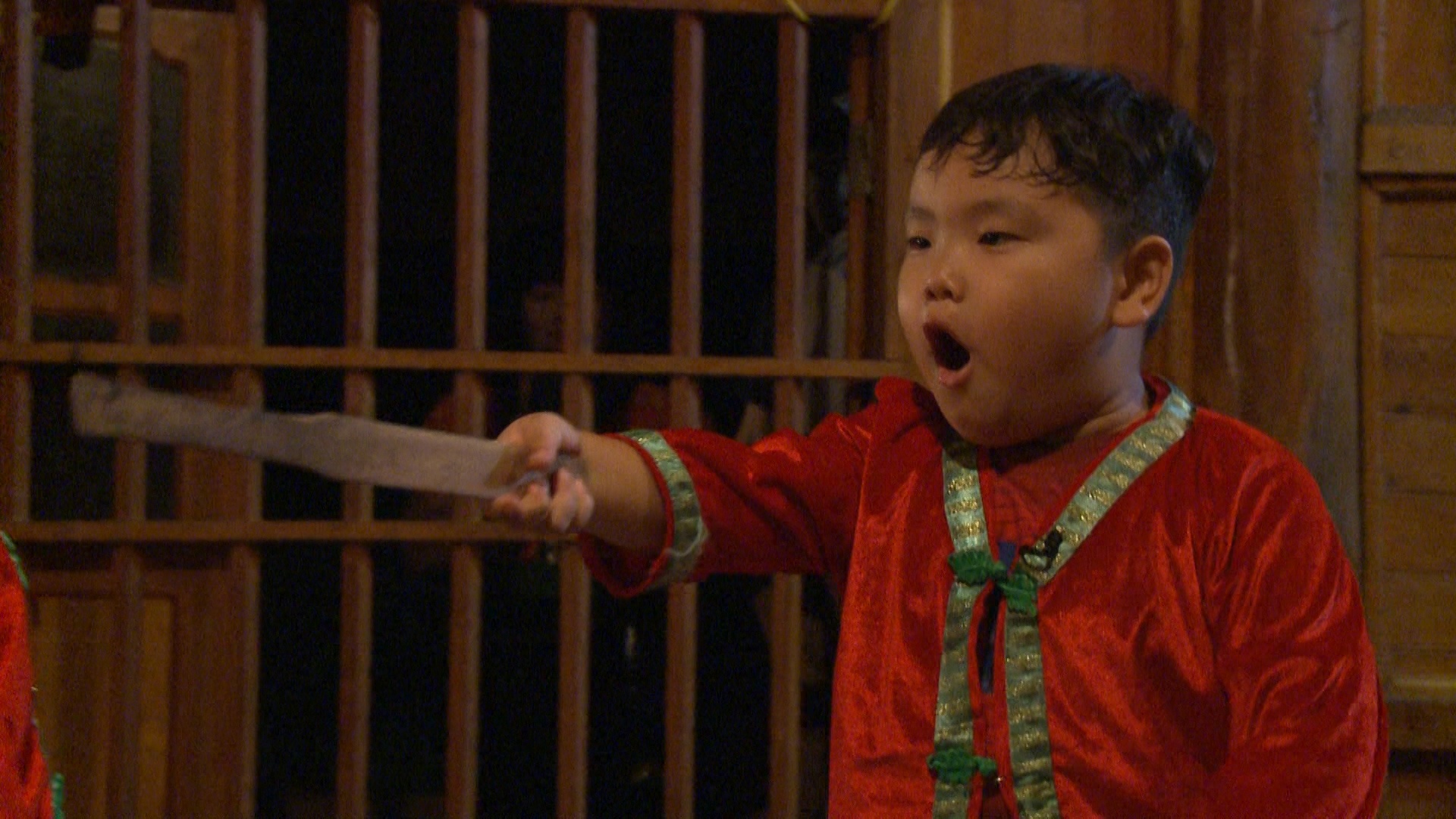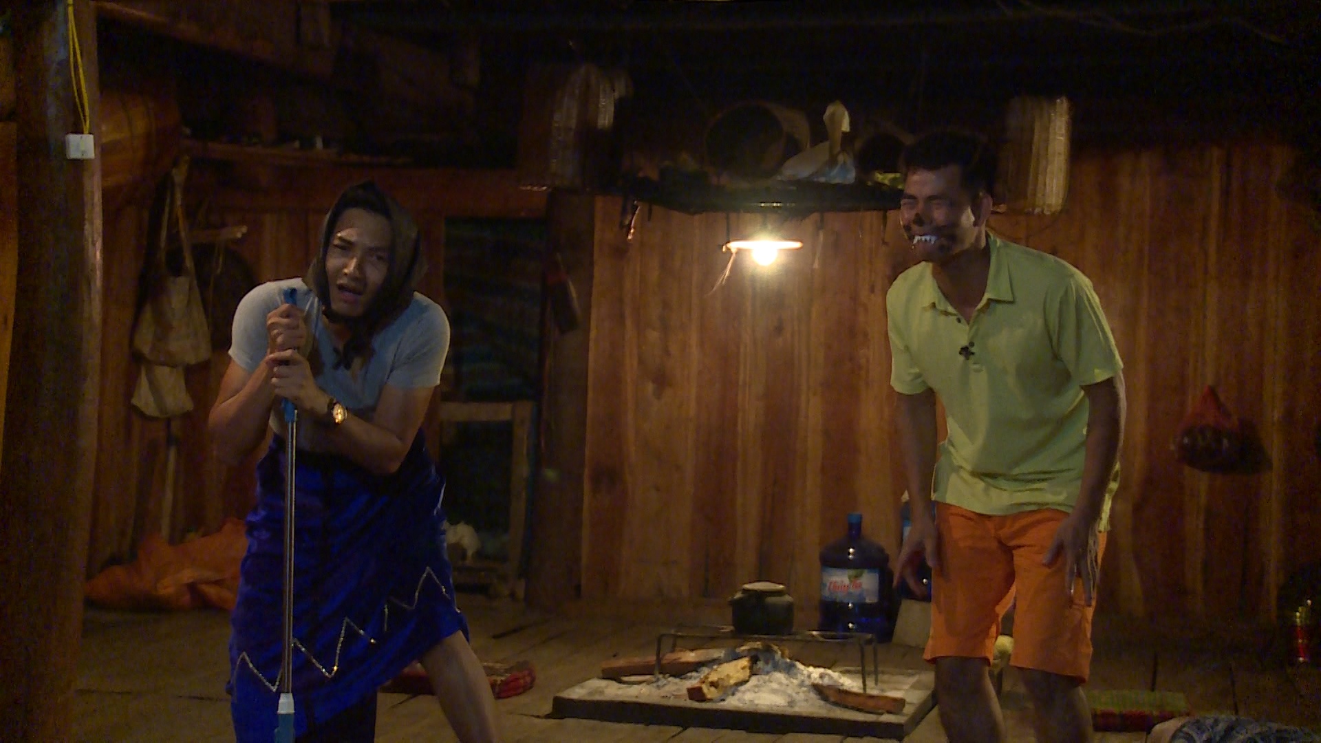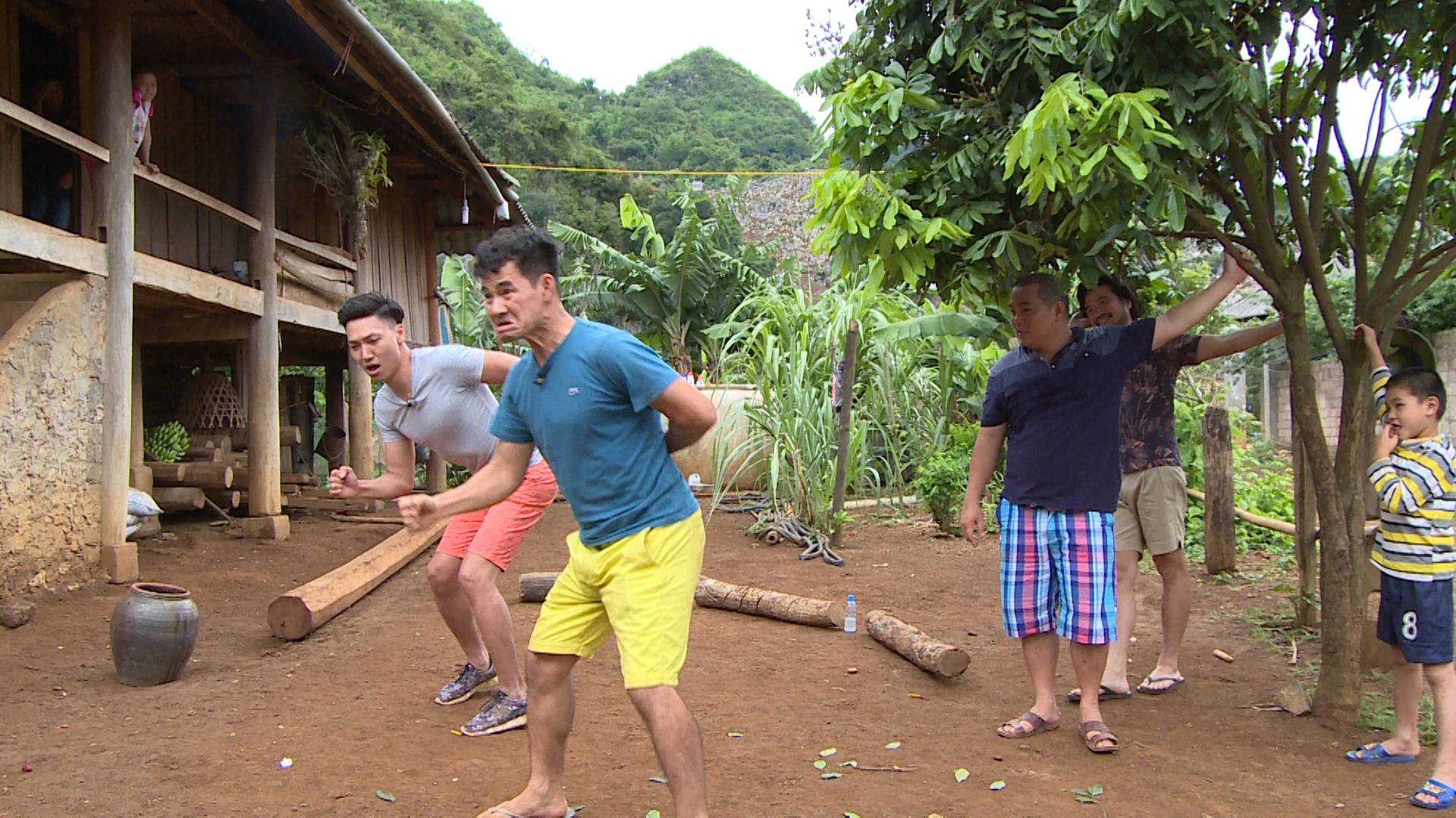 | Trở về nhà sàn, bé Bi - con trai Xuân Bắc - chỉ đạo các bạn diễn kịch tặng bốn ông bố. Nghệ sĩ Xuân Bắc rất bất ngờ và tự hào về cậu con trai lém lỉnh. |