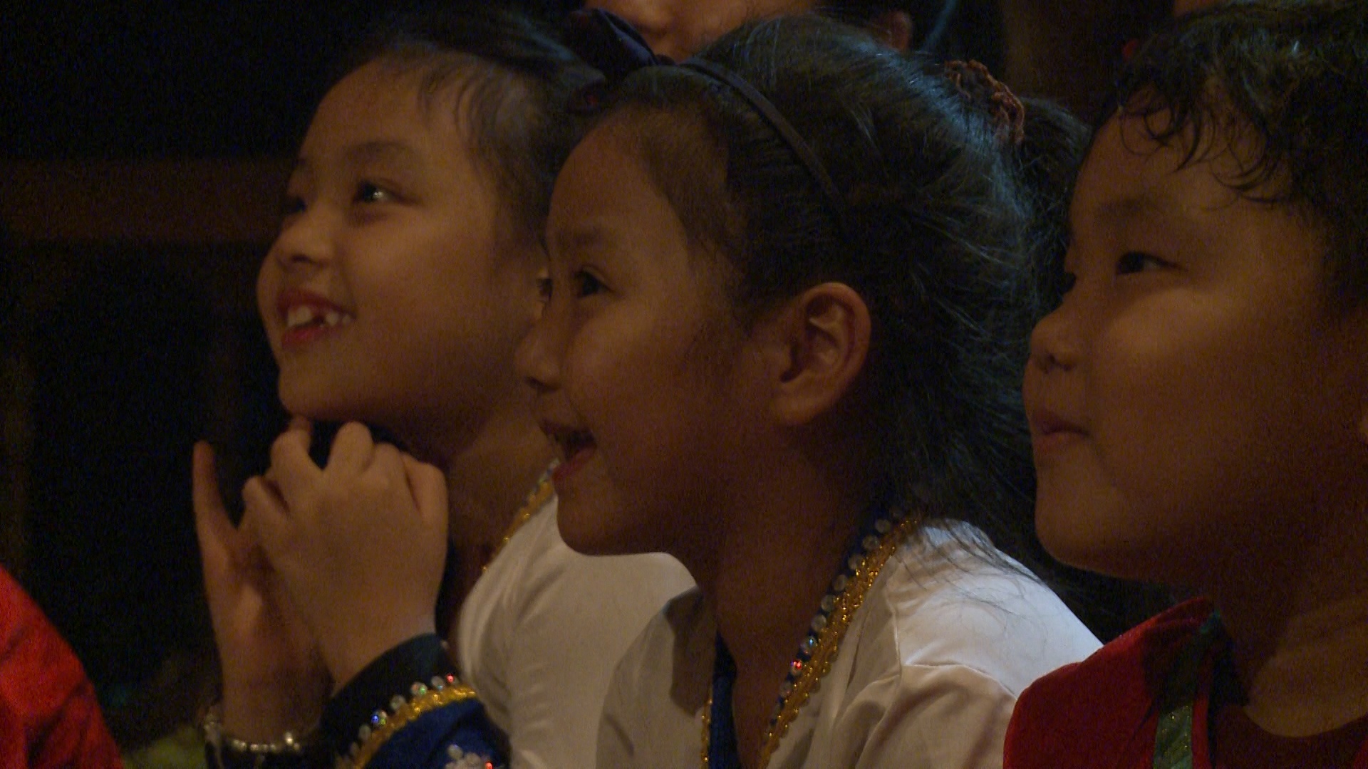 | Các bé háo hức xem phần đóng kịch của các bố. |