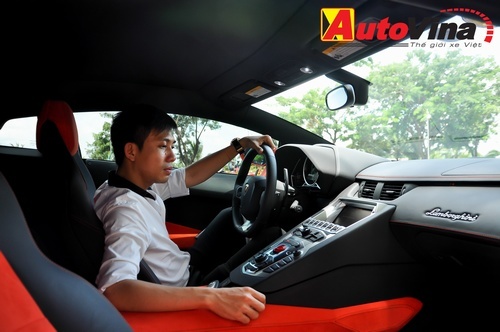 Anh chia sẻ, ban đầu đây là chiếc Aventador đầu tiên về đến Việt Nam, tuy nhiên nó lại bị mất điện do thời gian vận chuyển khá lâu, do vậy phải mất thời gian nhập bình điện mới về thì mới kéo chiếc xe ra khỏi Container được, đây là lí do nó xuất hiện ngoài đường phố Việt Nam thứ hai, sau chiếc màu vàng lộ diện trước đó 1 ngày.