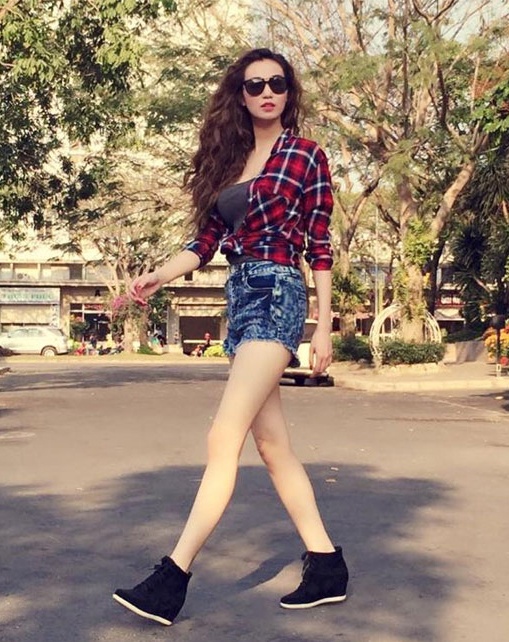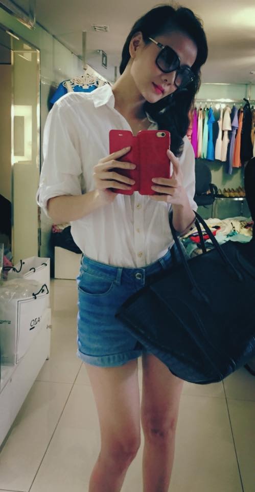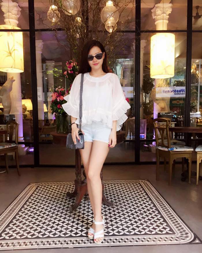 Để thoải mái và dễ dàng khi di chuyển Trúc Diễm thường chọn short để xuống phố hay đi du lịch.