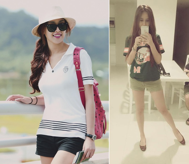 Set đồ đơn giản gồm quần short và áo phông giúp nổi bật đôi chân dài thon mượt của Mai Phương Thúy.