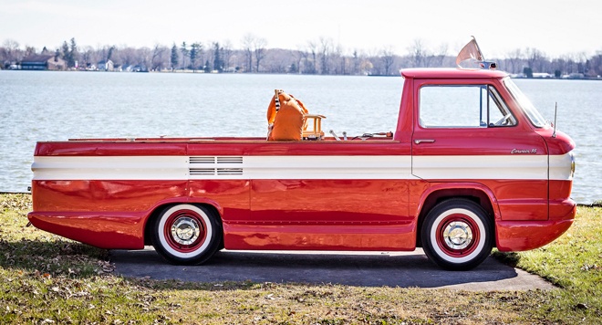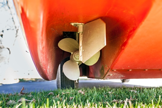 Họ đã chọn Corvan, một mẫu xe tải nhẹ nhất trên thị trường, bịt một vài lỗ trên thân xe, thêm vào chân vịt thử xem nó có thể hoạt động được không.