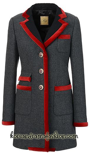 | Áo khoác chiết eo gam màu ghi viền đỏ của Fay. |