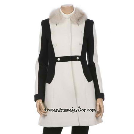 Áo khoác dáng dài màu trắng pha đen của Jill by Jill Stuart. Chiếc áo này có giá 538,200 Won - hơn 10,2 triệu VND.