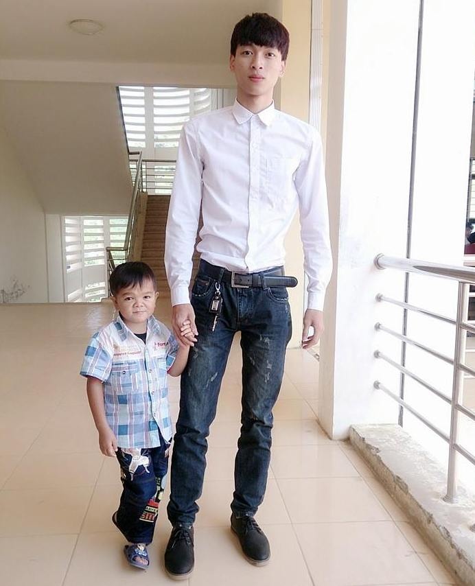 Liên hệ với chủ nhân bức ảnh, anh cho biết mình tên Lê Hải Anh, sinh năm 1996, đang là sinh viên ĐH Tây Bắc, ngành Công nghệ thông tin. Người chụp chung với anh trong bức ảnh chính là Sùng A Dì, người dân tộc Mông, sinh năm 1995, bạn cùng ngành với anh. Hải Anh cho biết, người bạn đặc biệt của anh chỉ cao gần 1m nặng 19 kg trong khi anh cao 1m78 - là sinh viên cao nhất lớp.