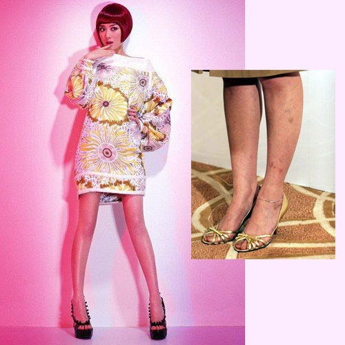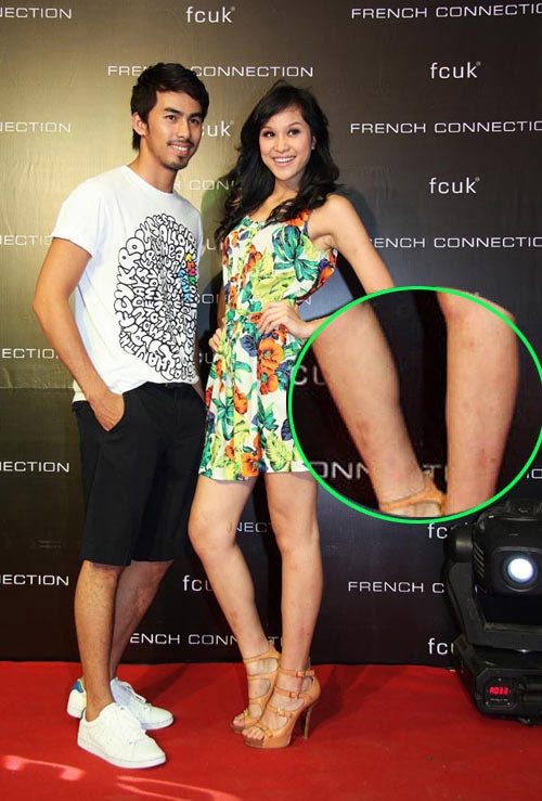 | Người mẫu Phương Mai nên tìm cách tạm che giấu đôi chân đầy sẹo thâm của mình. |