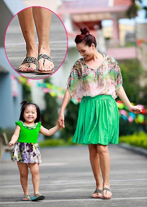 | Những nốt sẹo thâm trên chân là kẻ thù của Văn Mai Hương. |
