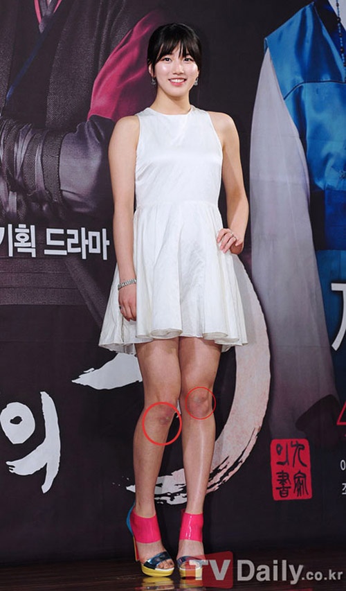 | Hai đầu gối của kiều nữ 9X Suzy là nơi vết thâm và sẹo ngự trị. |