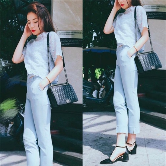 | Vẻ đẹp của đôi giày giúp tôn thêm nét thanh lịch cho quần âu công sở và áo ren điệu đà. |