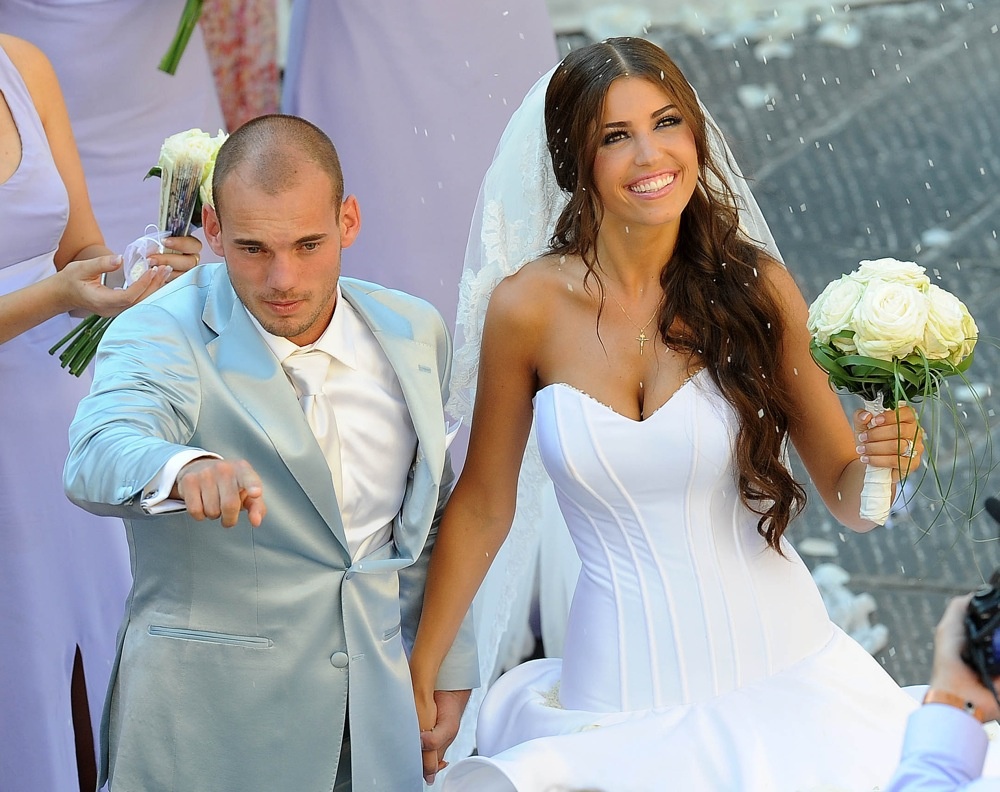 | Bà xã của tiền vệ Sneijder từng có 3 lần được bình chọn là người phụ nữ hấp dẫn nhất trên trang FHM của Hà Lan. Đám cưới của họ được tổ chức ở Tuscany vào năm 2010. |