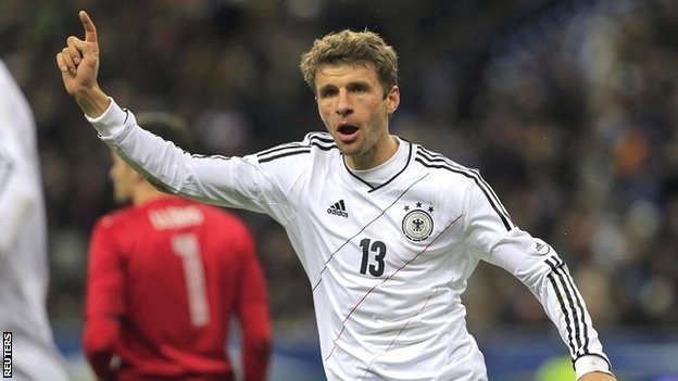 | Mueller thi đấu trọn vẹn 10 trận cùng đội tuyển Đức tại vòng loại. Cầu thủ đang khoác áo Bayern Munich cũng đã góp công lớn vào thành tích dẫn đầu bảng C của Cỗ xe tăng với 4 bàn thắng. Mueller là một trong số ngôi sao được kỳ vọng sẽ tỏa sáng rực rỡ tại Brazil vào hè tới. |