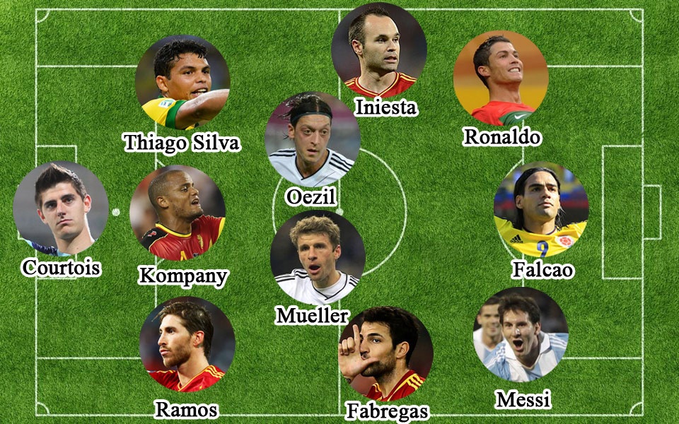 | Đội hình đắt giá nhất tham dự VCK World Cup 2014 theo sơ đồ 3-4-3 có trị giá lên tới 625 triệu euro. |