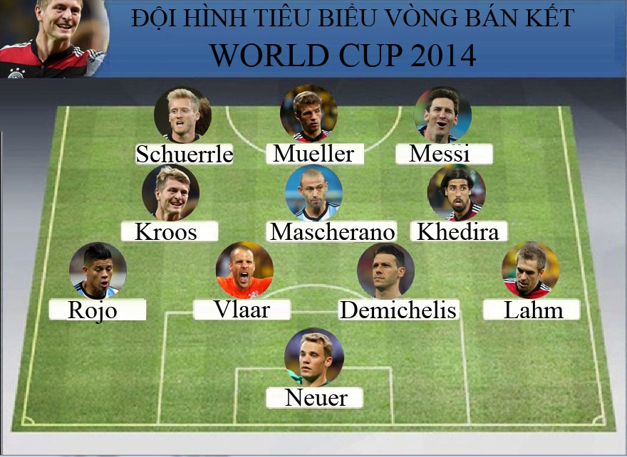 | Đội hình tiêu biểu vòng bán kết World Cup 2014 theo sơ đồ chiến thuật 4-3-3. |