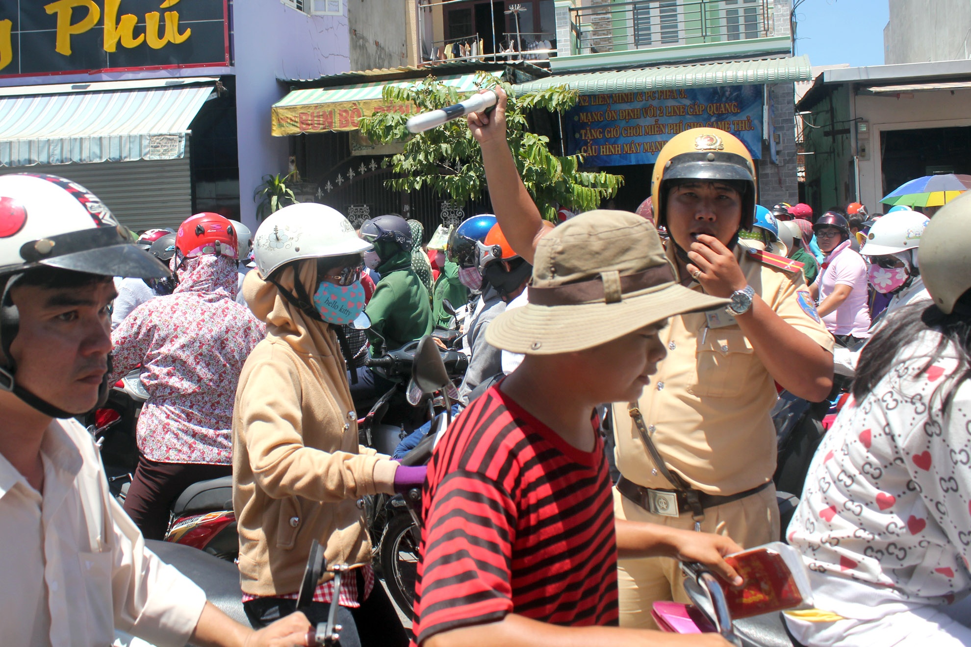 | Đến khoảng 11h30, lực lượng CSGT mới có mặt tại khu vực này để điều tiết giao thông. |