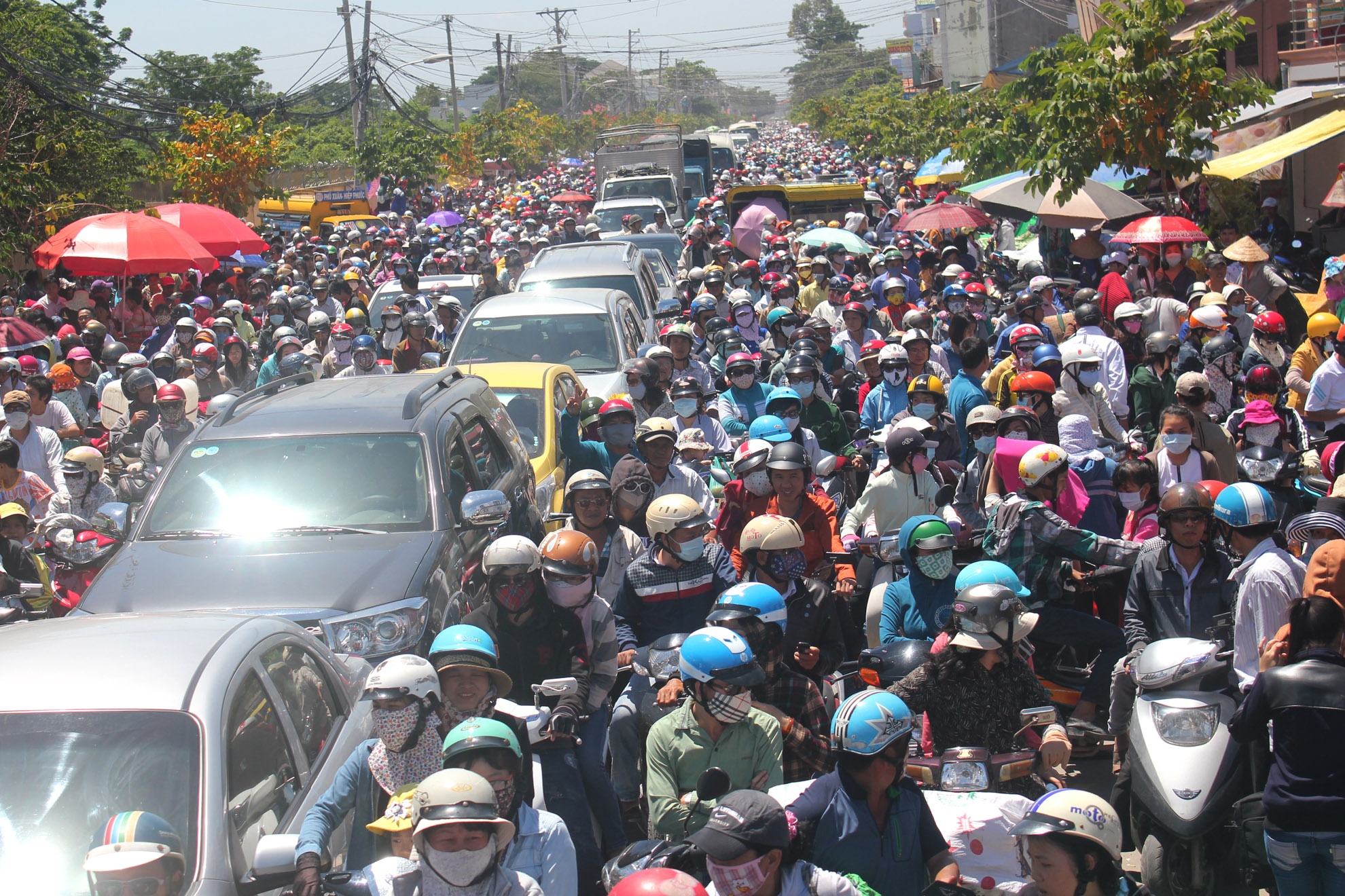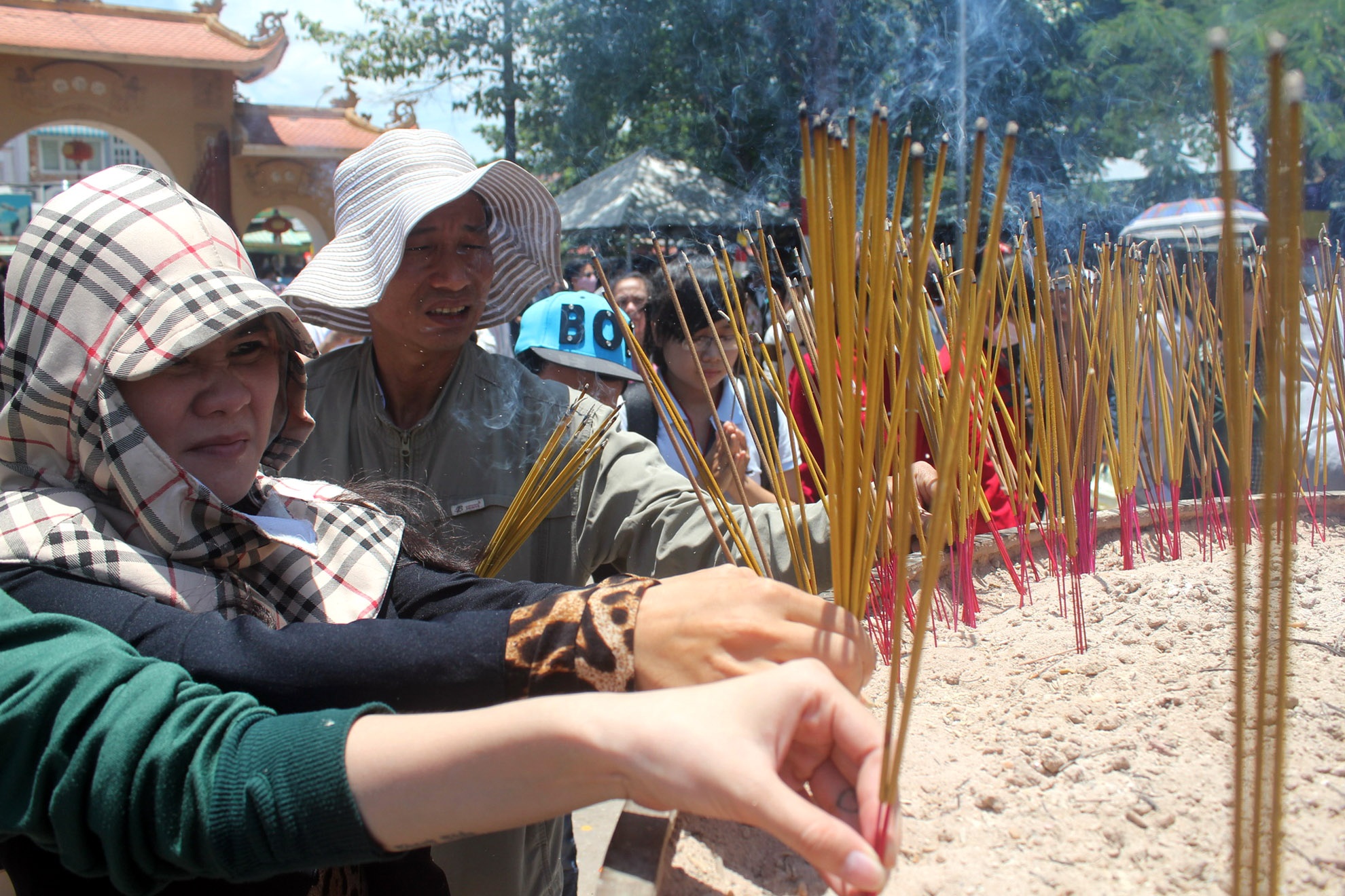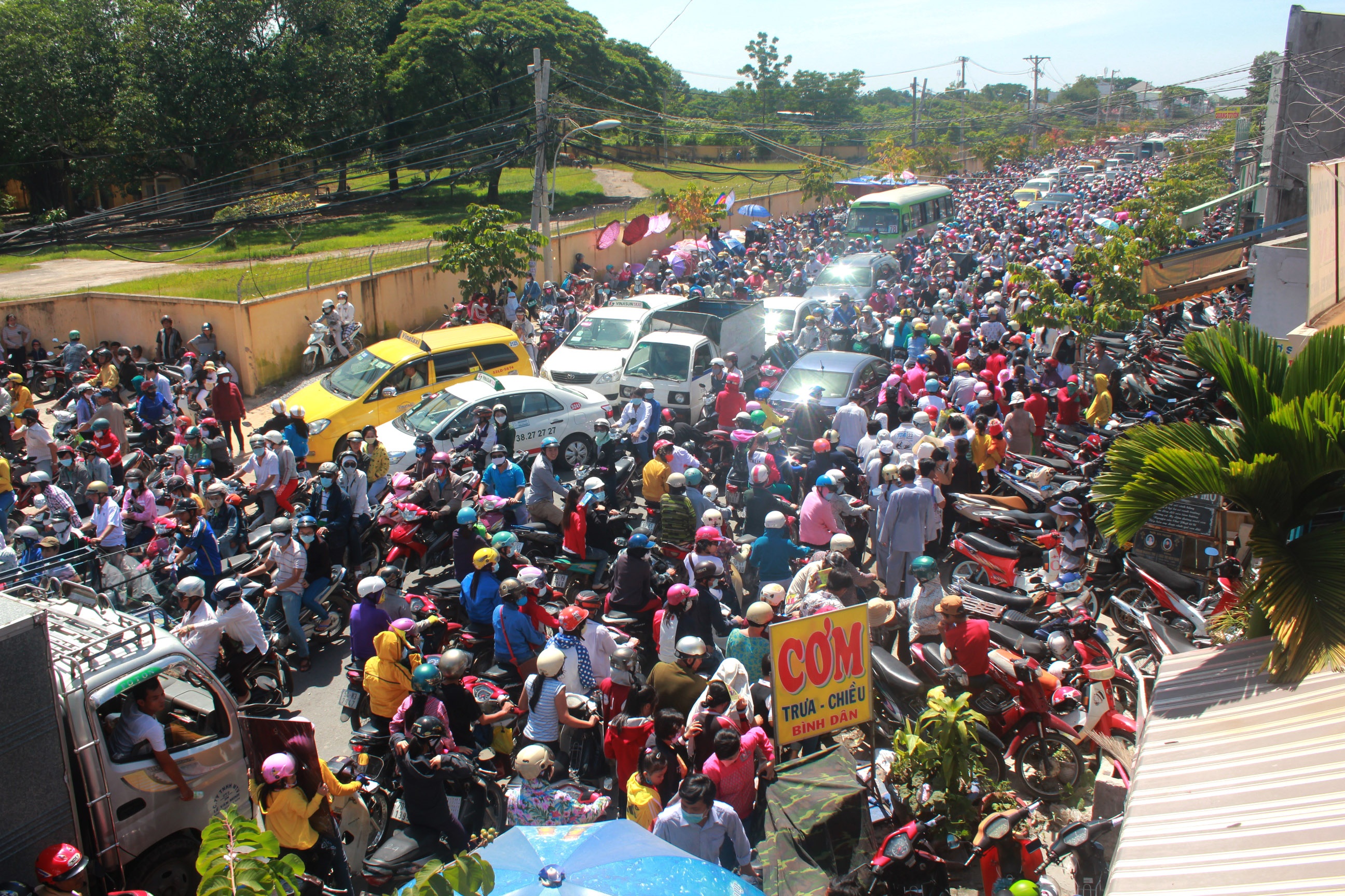 | Mặc dù trời nắng nóng, nhưng đến gần trưa, hàng chục ngàn người từ khắp nơi bắt đầu đổ về chùa khiến các ngả đường vào ngôi chùa này bị ùn tắc nghiêm trọng trong nhiều giờ liền. |