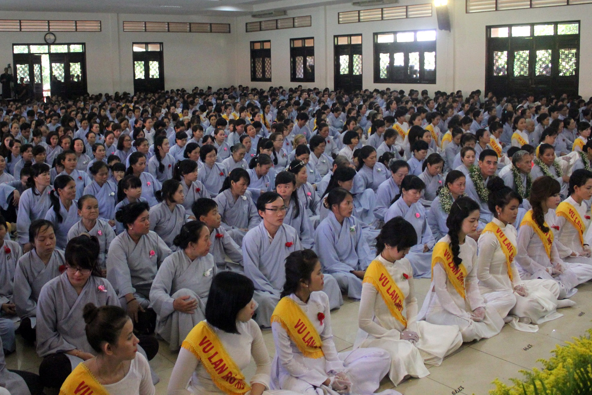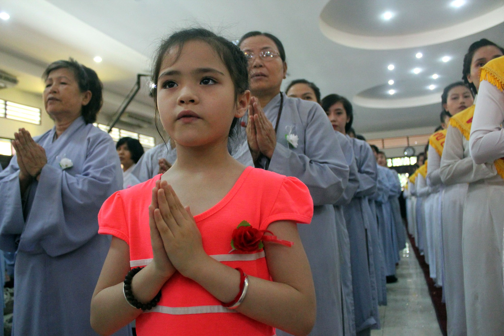 | Phật tử tham dự lễ đa phần đã lớn tuổi nhưng cũng không ít em nhỏ có mặt trong chính điện của chùa. Các tăng ni, Phật tử chắp tay thành kính, thực hiện các nghi thức trong buổi lễ, cùng đọc lại những lời dạy của Đức Phật về chữ Hiếu.. |