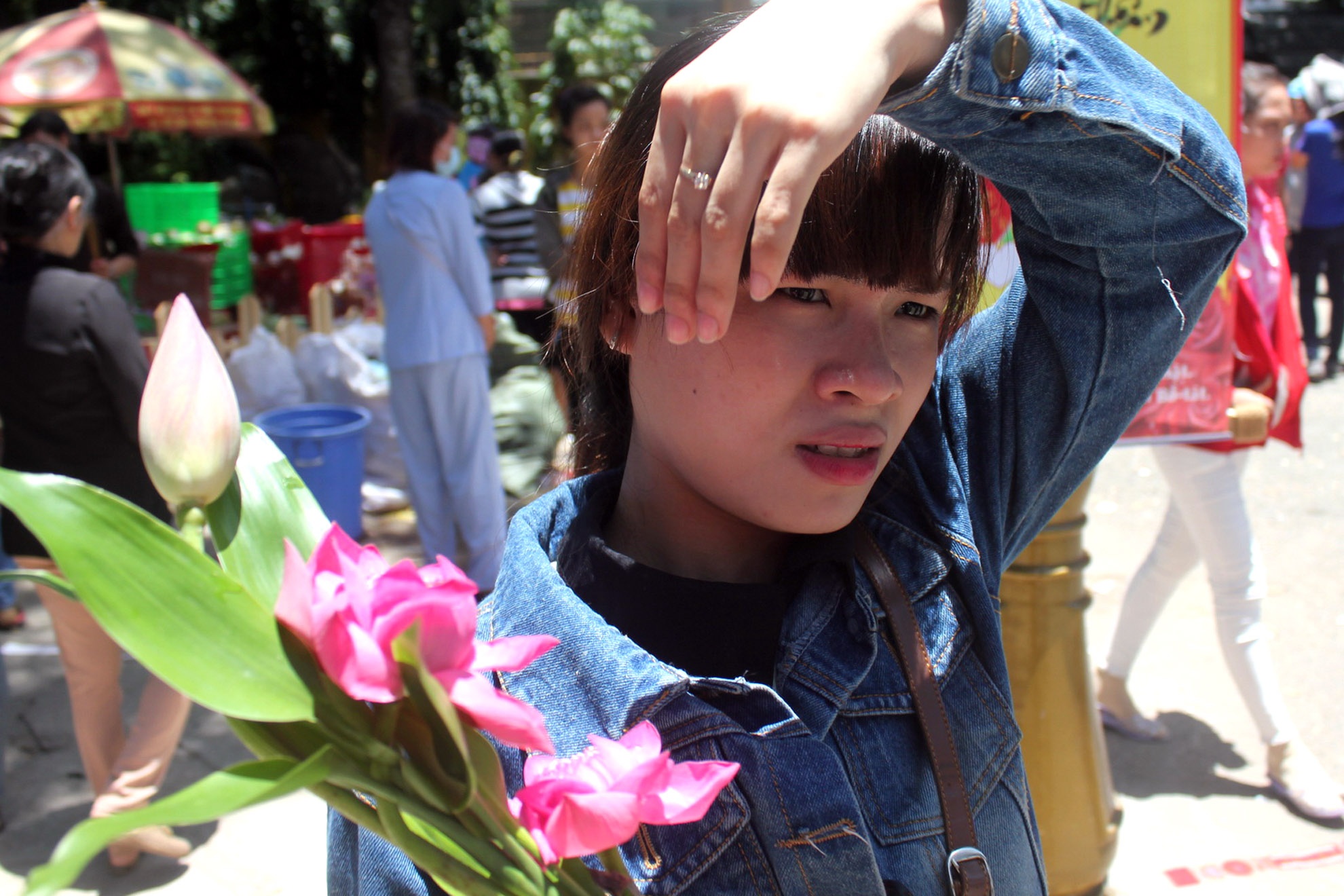 | Đến giữa buổi sáng, dòng người bắt đầu đổ về ngôi chùa này để dự lễ báo hiếu. Nhiều người mang theo những bó hoa sen, đội nắng tới chùa. Lễ Vu Lan là lễ mà mọi người có dịp để tri ân công ơn các đấng sinh thành. |