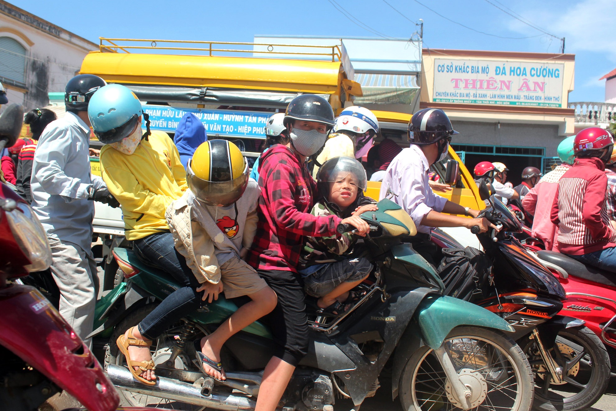 | Từ 9h sáng, đường Lê Lợi, huyện Hóc Môn mới được mở rộng đông nghịt xe cộ kéo dài cả km. Phần lớn các phương tiện đều bị đứng tại chỗ, một số cố gắng nhích từng chút một. |