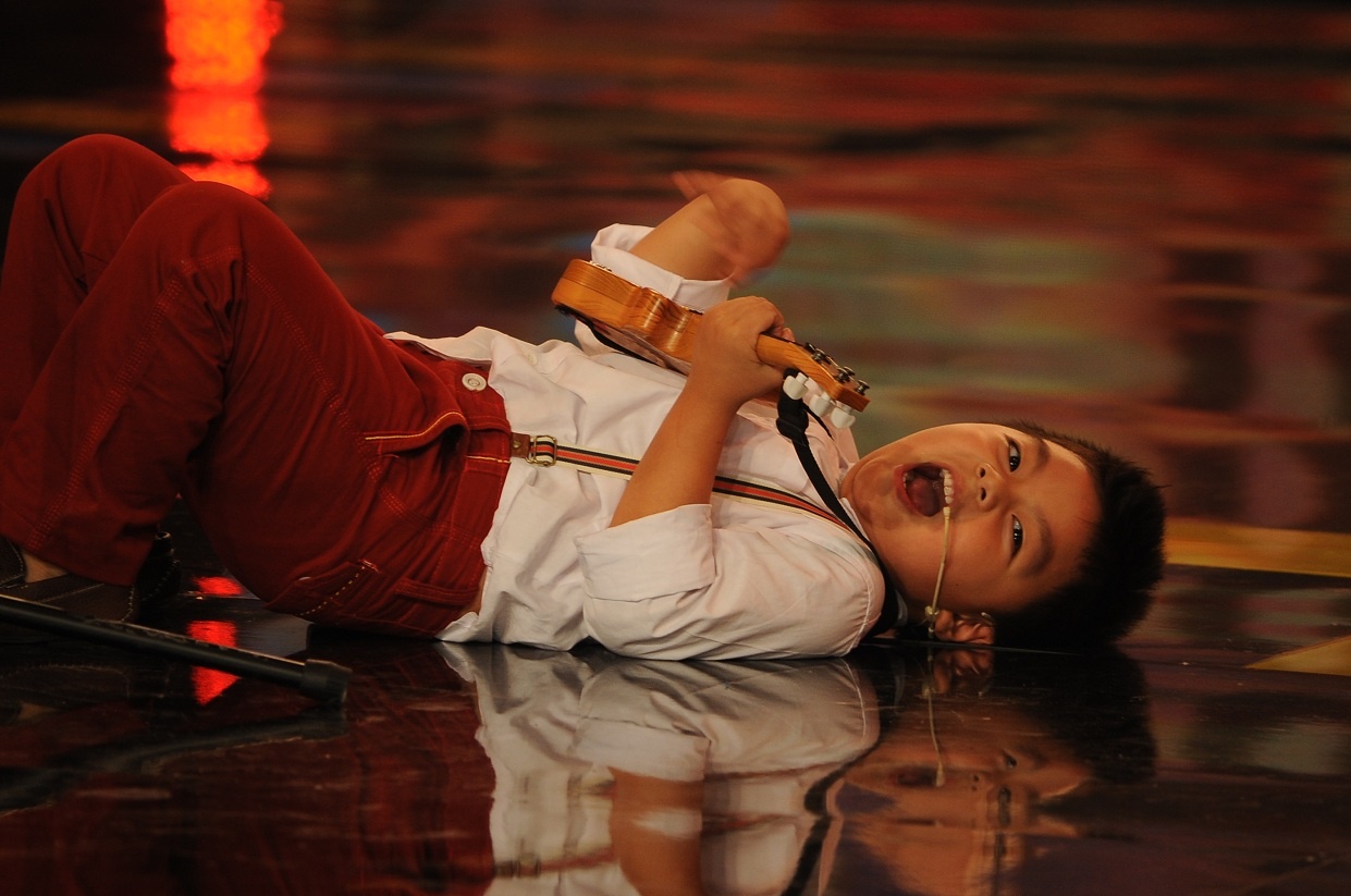 Ngay từ khi tiếng nhạc vang lên, thí sinh được xem như "đối thủ của Ku Tin" nhún nhảy và phiêu theo giai điệu. Mặc cho sai nhịp, mặc cho hụt hơi, cậu bé đáng yêu này vẫn vô tư trình diễn. Thậm chí, Thiên Phước còn nằm hẳn trên sân khấu để diễn tả điệu bộ gãy đàn như một nhạc công chuyên nghiệp.