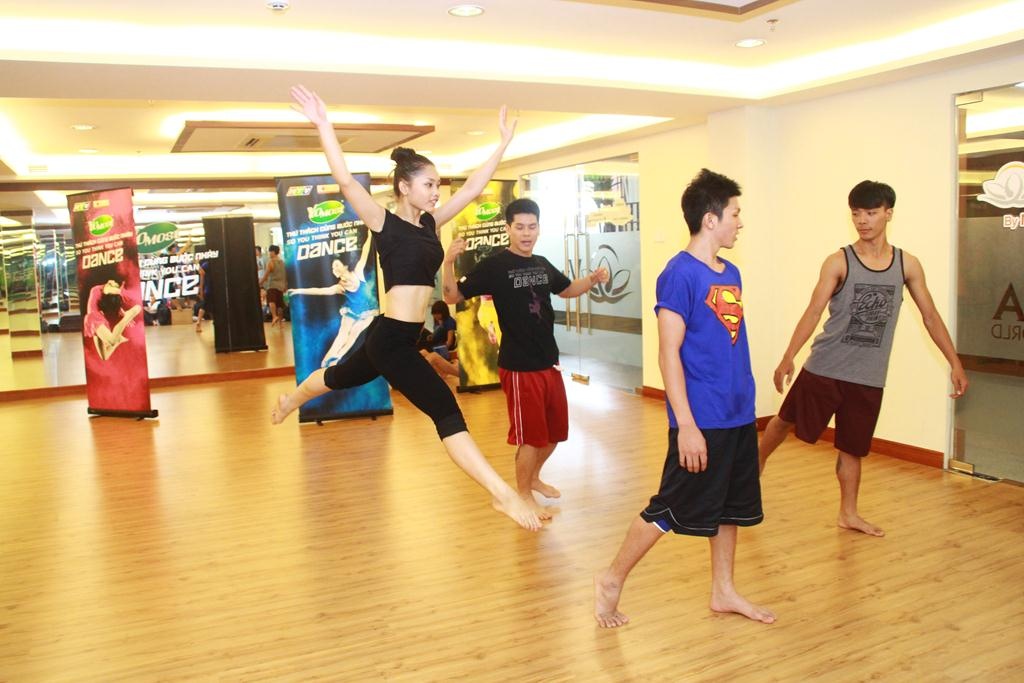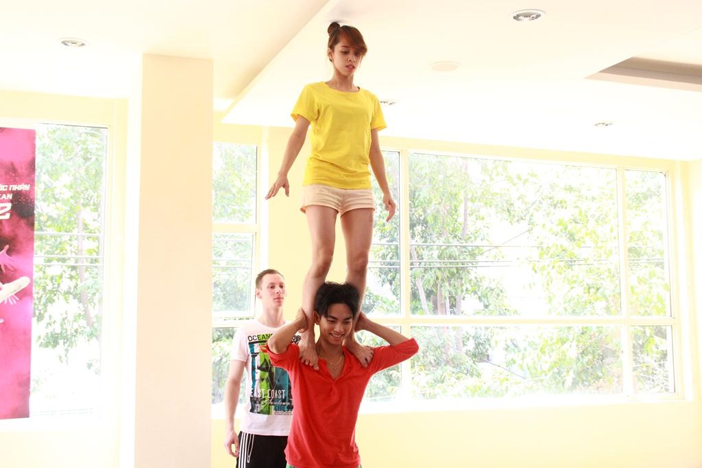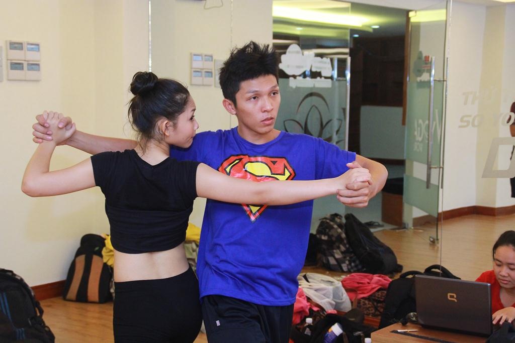 Trong khi đó Lan Anh cũng có bạn nhảy mới là Minh Trường. May mắn là họ cũng có hình thể và chiều cao tương xứng nên sẽ không gặp nhiều khó khăn trong việc thể hiện các động tác nguy hiểm. |