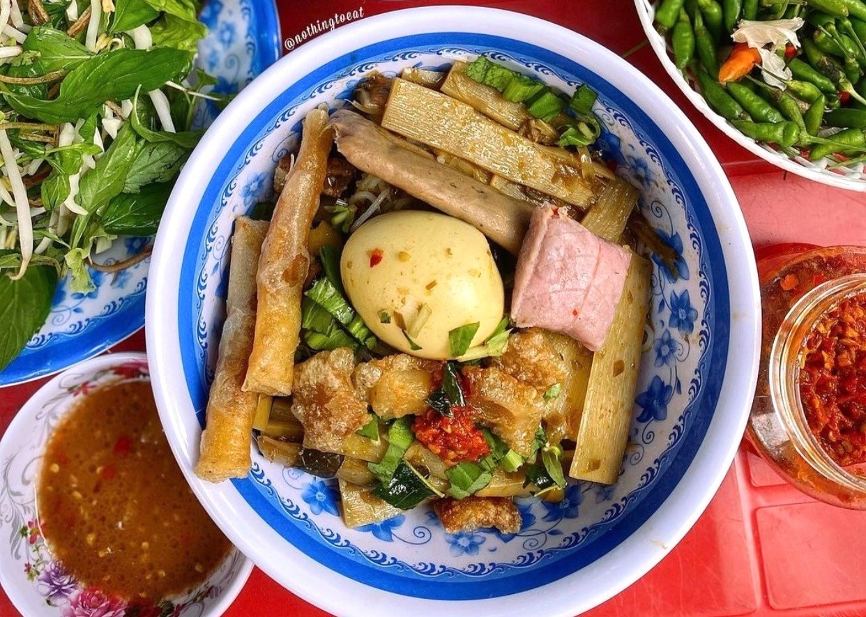 Bún đậu mắm tôm với hương vị đặc trưng ẩm thực miền Bắc cũng chinh phục nhiều thực khách tại thành phố biển. Món ăn thường được phục vụ trên chiếc mẹt với các thành phần gồm bún, đậu phụ rán, nem, chả cốm, thịt heo, rau sống, dưa leo... Điểm nhấn là chén mắm tôm cùng quả tắc, tỏi, ớt tạo phần nước chấm hấp dẫn. Quán Chipmin Food&drink nằm trên đường Tiểu La hay hàng bún đậu Hương Bắc ở đường Đống Đa là nơi bạn có cơ hội nhâm nhi món ăn này. Ảnh: Nothingtoeat_, Ryanfoodaholic. |