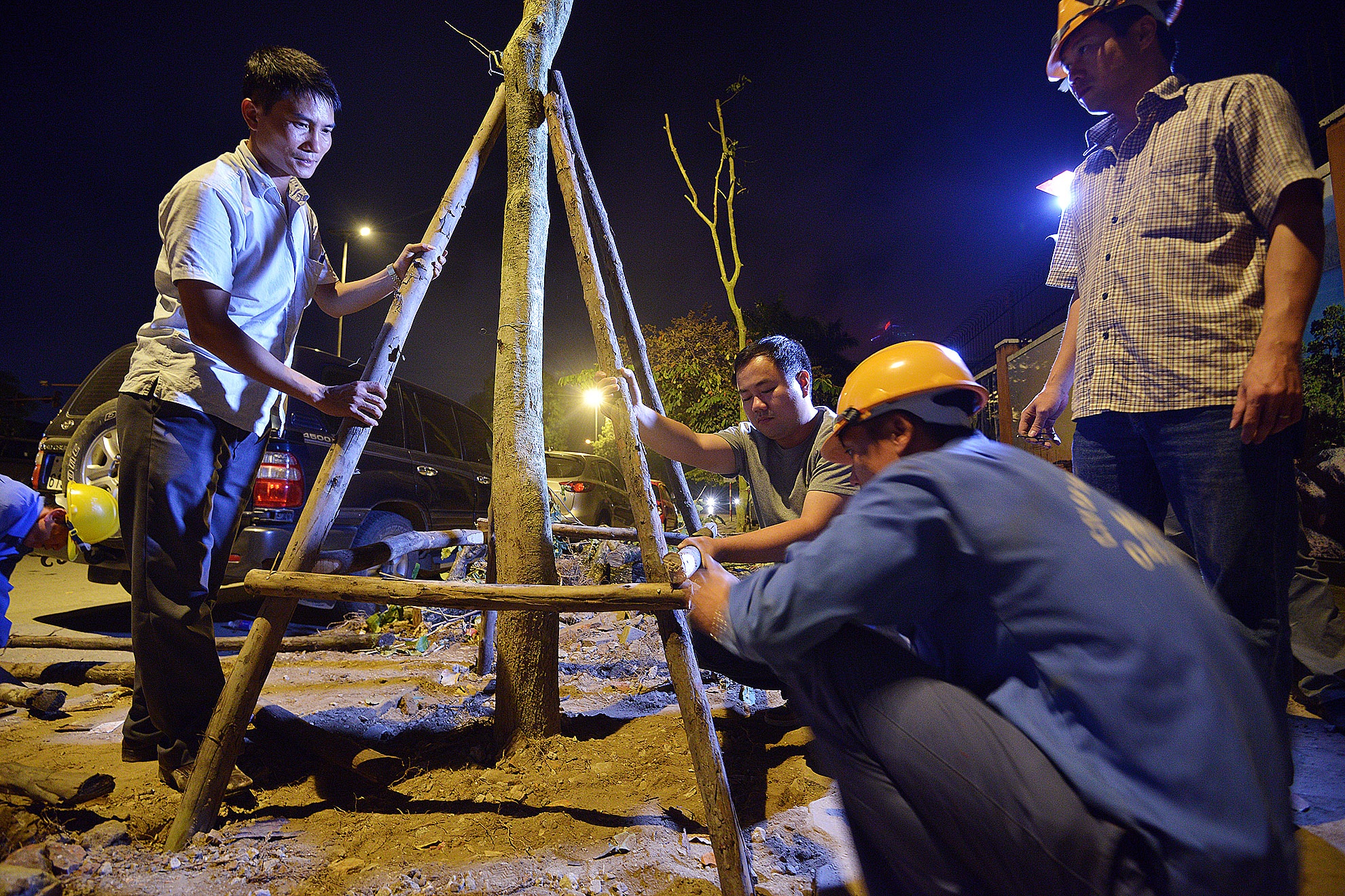 | Việc trồng lại cây được làm theo hình thức cuốn chiếu. Ban đêm cơ quan chức năng tiến hành trồng thay thế cây mới. |