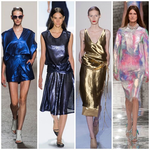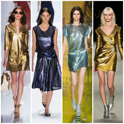 Không chỉ dừng lại ở những gam màu ánh kim đơn điệu như bạc, vàng, đồng, mùa xuân hè năm nay chứng kiến sự bùng nổ của rất nhiều gam màu ánh kim tươi sáng như xanh dương, xanh lá, nâu. Bằng sự đa dạng màu sắc này các nhà thiết kế sẽ giúp phái đẹp thỏa sức tỏa sáng giữa đám đông.