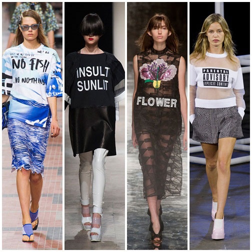 Bên cạnh họa tiết hoa, những bộ trang phục in hình chữ cái cũng gây sốt trong mùa xuân hè sắp tới. Không chỉ giúp thiết kế bắt mắt hơn mà nhờ loại họa tiết này mà các trang phục đã vượt qua ranh giới của thời trang và truyền tải nhiều thông điệp ý nghĩa.