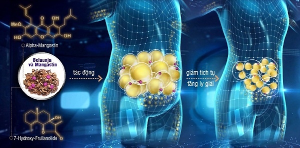 Ngoài chế độ dinh dưỡng và vận động, cần kết hợp sử dụng các hoạt chất sinh học từ thiên nhiên đánh trúng đích vào mỡ trắng. Gần đây, Trung tâm nghiên cứu InterHealth Nutraceuticals (Mỹ) đã chiết xuất thành công các hoạt chất sinh học thiên nhiên từ Belaunja và Mangastin với cơ chế giảm tích tụ và tăng ly giải mỡ trắng.