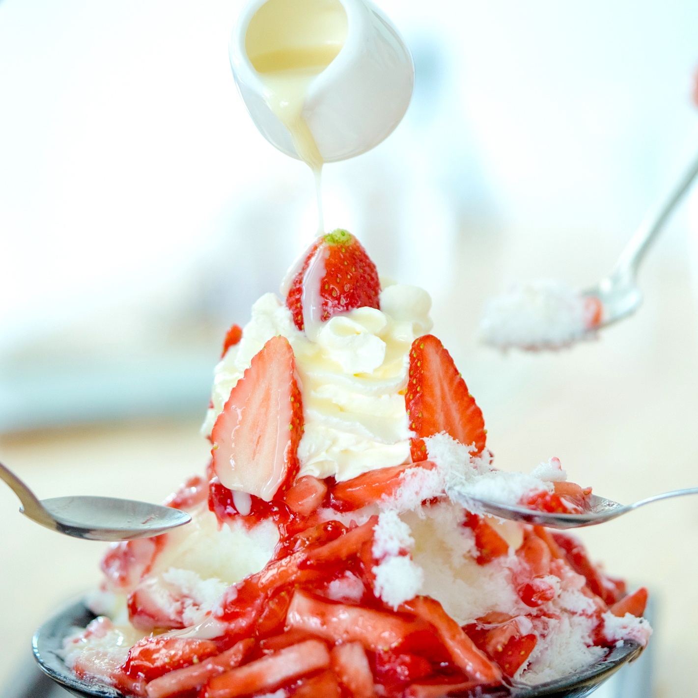 Qua lời giới thiệu, khi làm đá bào sữa, tiệm không dùng nước, đá lạnh, thay vào đó là sử dụng 100% sữa tươi nguyên chất. Điều này giúp tôi dễ cảm nhận được vị hấp dẫn, đậm đà của lớp đá bào mềm mịn.