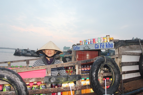 Đến chợ, ngoài ngắm nhìn cảnh buôn bán tấp nập, bạn đừng quên thưởng thức ly cà phê đậm đà hoặc chiếc bánh bao nóng hổi từ những ghe bán hàng ăn uống. Những chiếc ghe này rảo khắp chợ, chào mời khách du lịch và thương lái bằng chất giọng đặc sệt miền Tây.