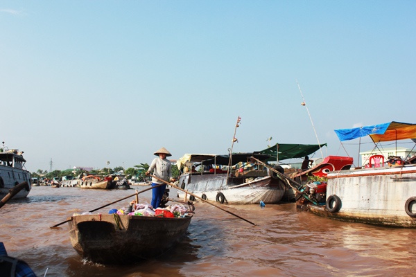 Quang cảnh mua bán, trao đổi hàng hóa trên sông vô cùng nhộn nhịp và thú vị. Mỗi một chiếc ghe có khi là ngôi nhà trên sông. Bạn có thể chứng kiến cảnh sinh hoạt buổi sáng của một gia đình với cuộc sống lênh đênh theo từng con nước.
