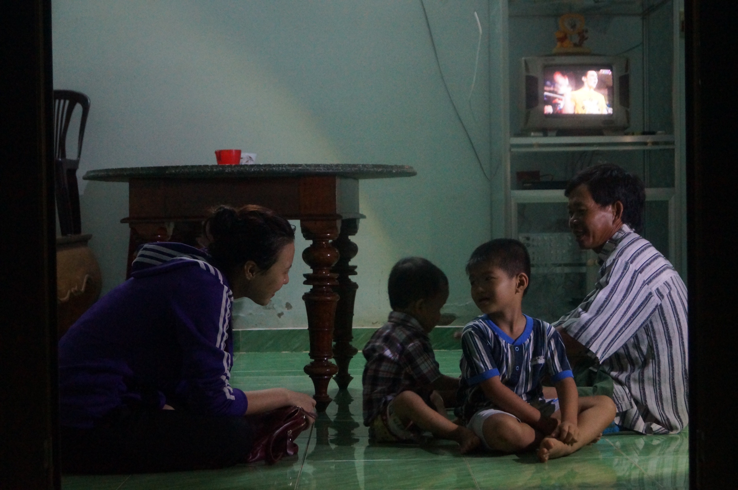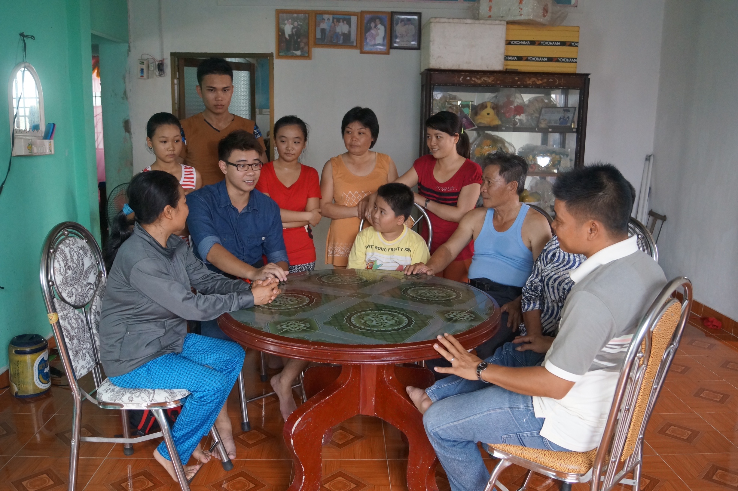 | Đông Hùng trò chuyện với gia đình mình ở nhờ. |