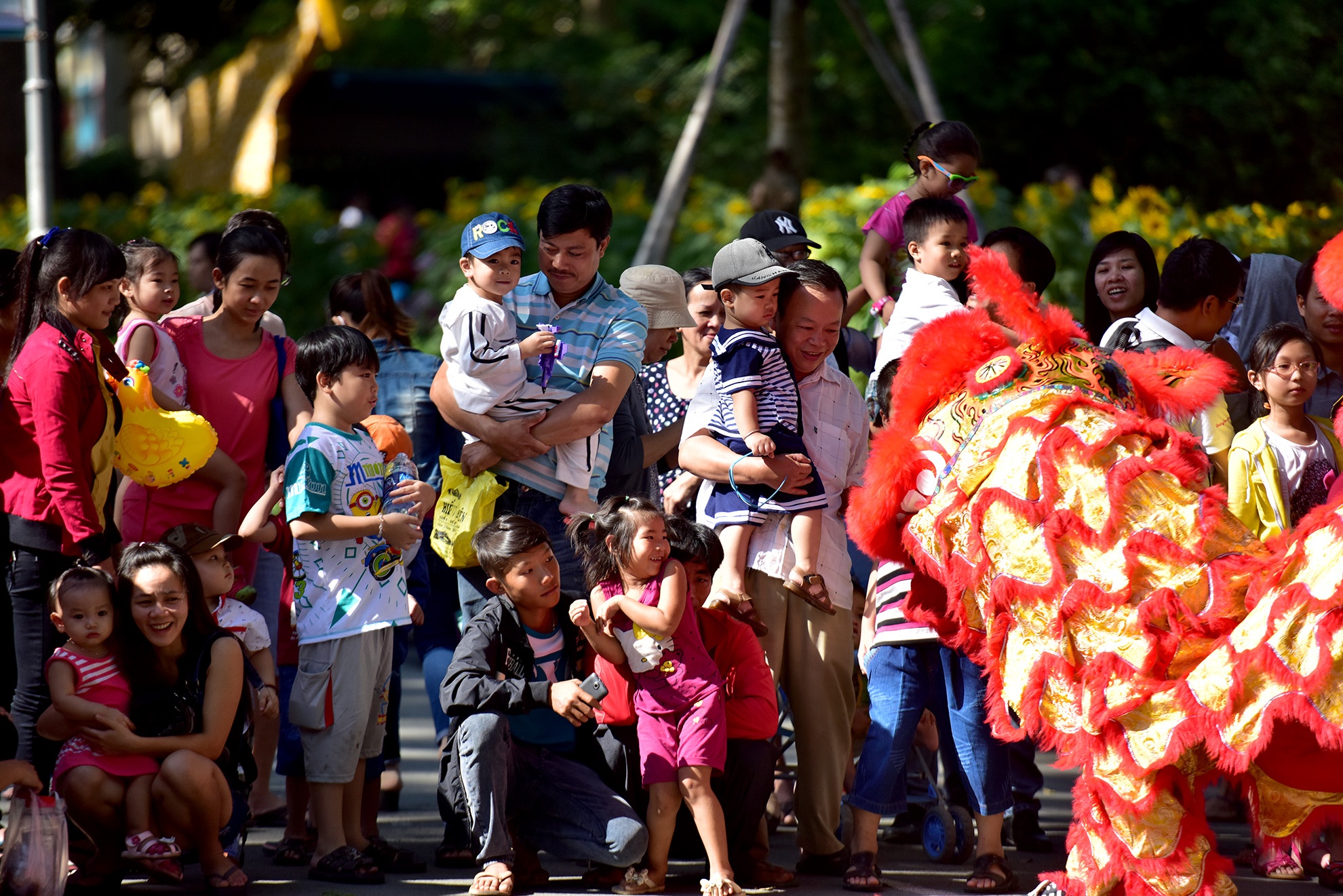 | Nhiều trẻ em tỏ ra rất thích thú với màn múa lân ở vườn thú có tuổi đời 150 năm. |