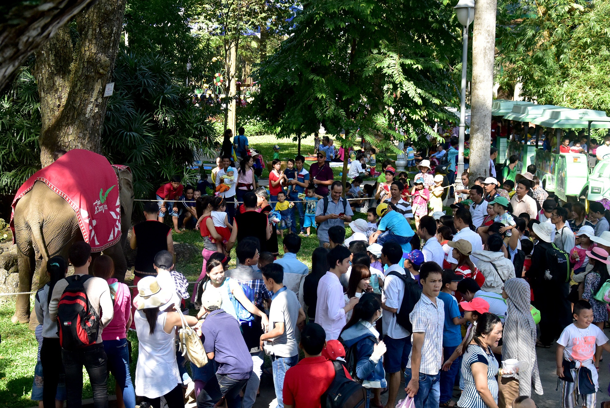 | Từ sáng sớm, dòng người từ nhiều hướng đổ về Thảo Cầm Viên (quận 1) để vui chơi dịp nghỉ Tết dương lịch 2016. Các cổng ra vào của vườn thú này đều được mở. |