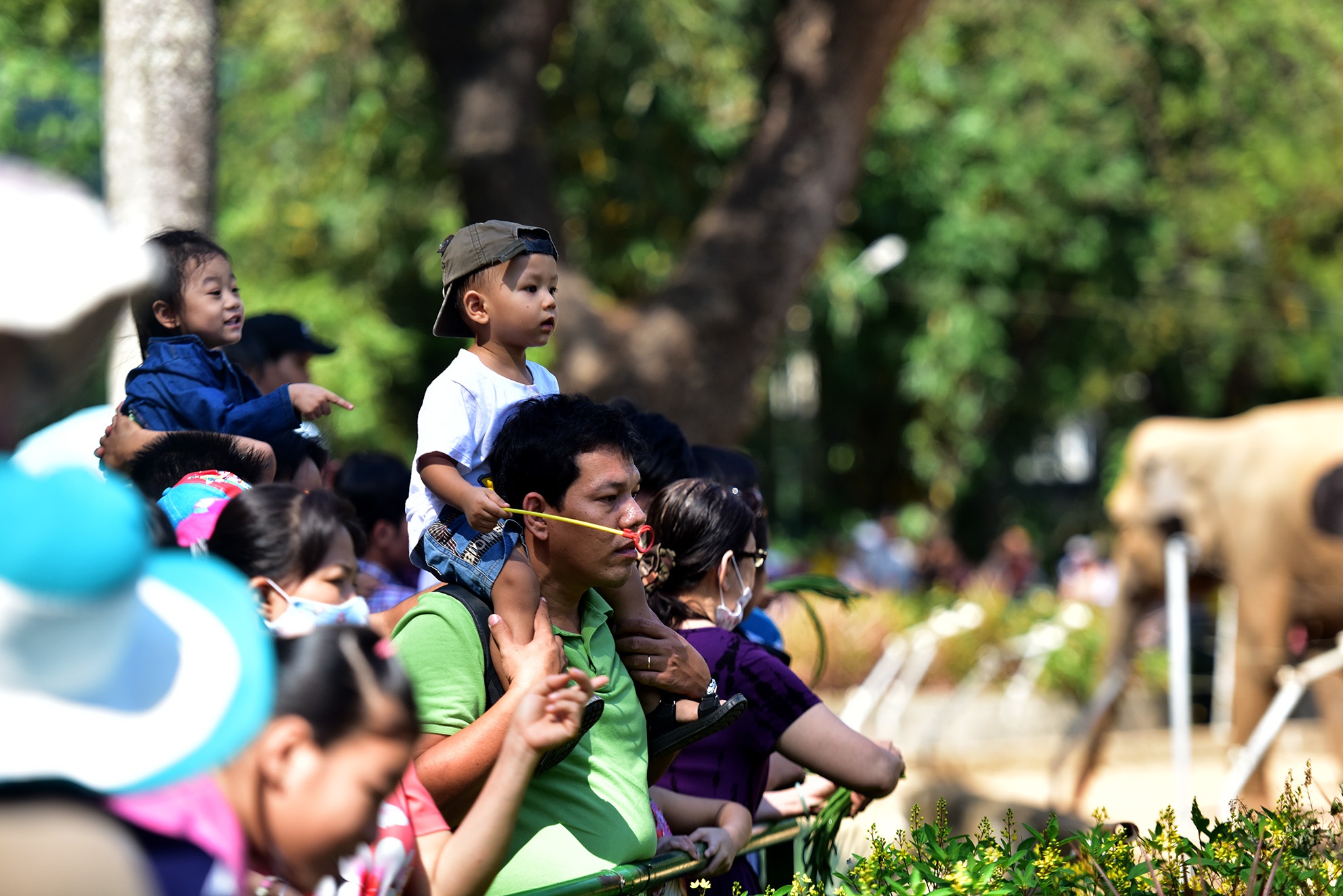 | Nhiều phụ huynh cõng con qua các khu vực để ngắm các loài thú. Anh Thận (quận Tân Phú), cho biết mặc dù biết ngày lễ sẽ đông nhưng vườn thú vẫn là lựa chọn tốt nhất bởi nằm ở trung tâm, không phải đi xa tới các khu du lịch khác. |