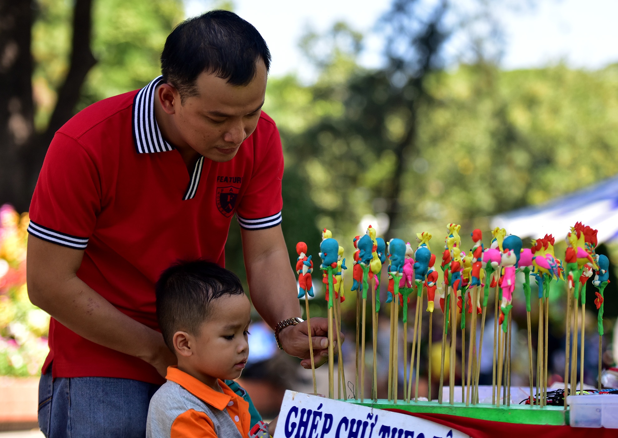 | Vừa mua tò he cho con, anh Khế (quận Gò Vấp) vừa cho biết, do công việc bận rộn, hôm nay vợ chồng anh mới đưa con trai tới tham quan vườn thú vui chơi được. "Tuy đông người nhưng thế mới có không khí ngày lễ chứ", người cha trẻ, cười vui. |
