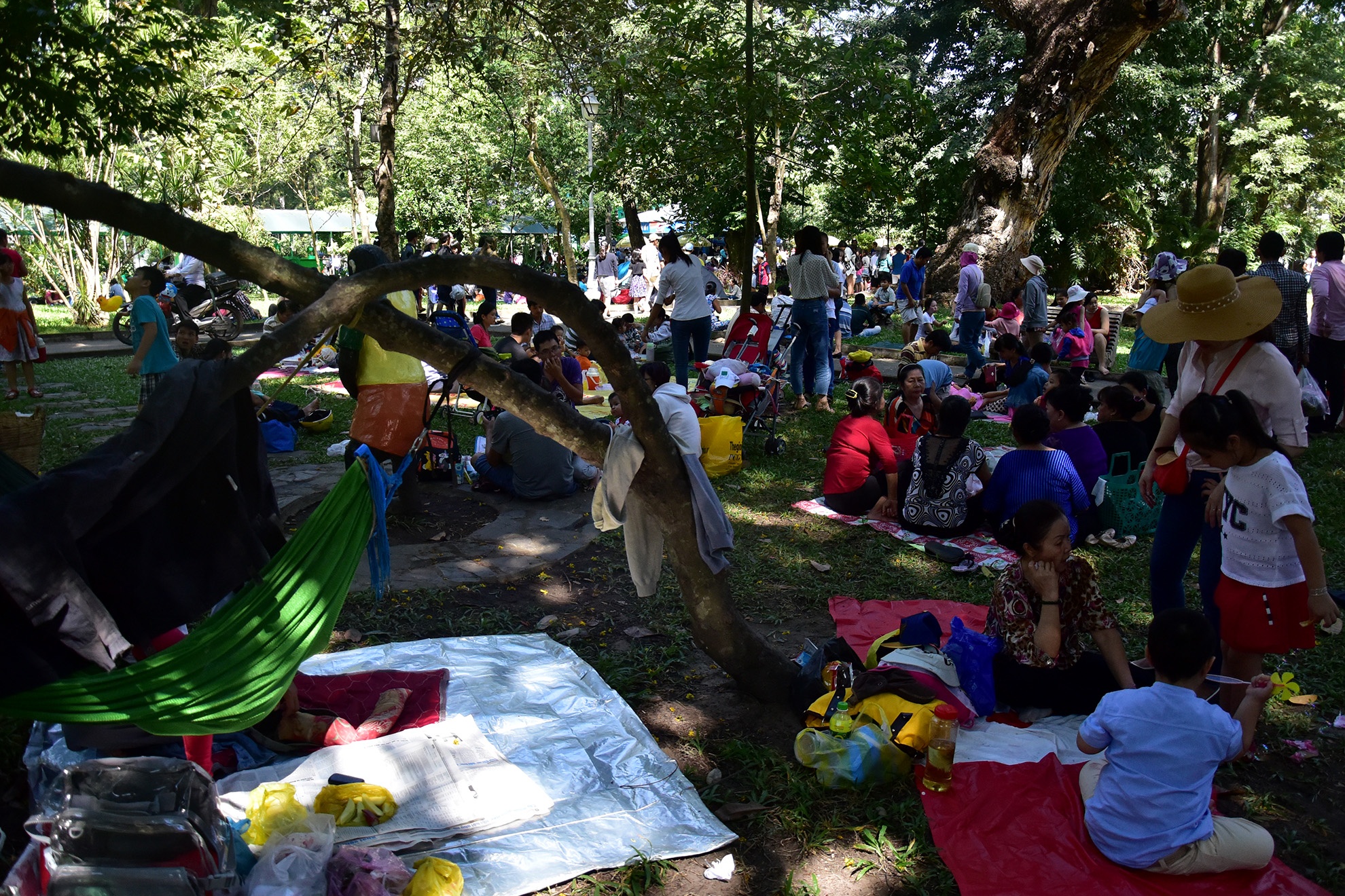 | Phần lớn các gia đình ngoài mang theo đồ ăn uống, họ còn mang cả bạt, võng... để nghỉ ngơi tại vườn thú vào giữa trưa. |