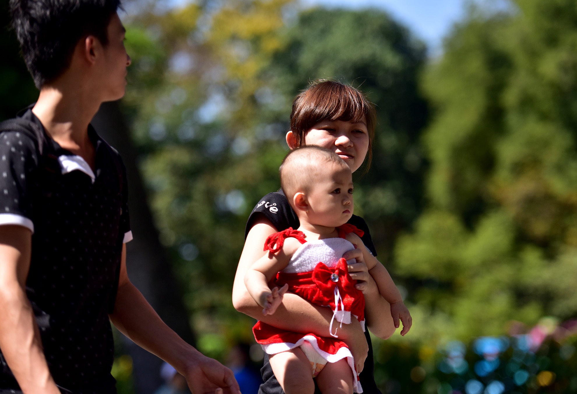 | Mặc dù trời nắng và khá nóng nhưng rất nhiều gia đình vẫn đưa trẻ nhỏ đi chơi. |
